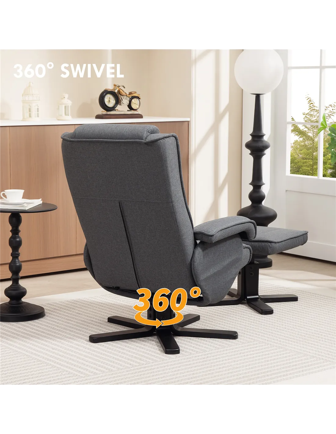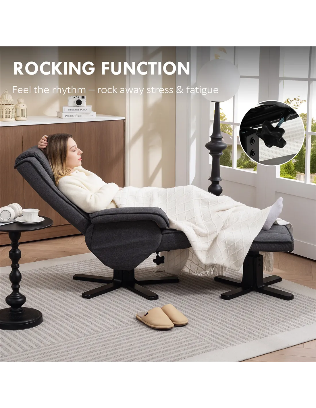 HOMCOM Rocker Swivel Recliner Chair with Footstool - Charcoal Grey Linen