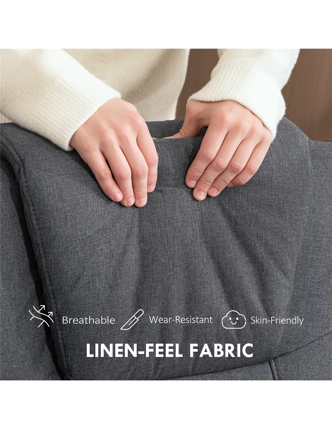 The HOMCOM Rocker Swivel Recliner Chair with Footstool in Charcoal Grey Linen is a versatile addition to any British home. Ideal for cosy evenings by the fire, it serves perfectly as a relaxing reading chair or a stylish accent in your living room. Thanks to its 360° swivel and gentle rocking motion, it encourages movement and comfort, making it suitable for watching TV or enjoying a quiet moment with a cup of tea. The accompanying footstool supports your legs, reducing pressure and enhancing relaxation after a long day. Its breathable linen fabric and sturdy bent wood base ensure durability and comfort, fitting seamlessly into modern or traditional interiors.