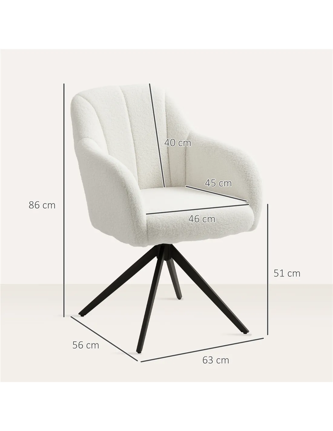 The HOMCOM swivel armchair is a versatile addition to any home environment. Ideal for living rooms, it provides a stylish yet comfortable spot for reading or watching TV. In bedrooms, it serves as a cosy vanity chair or a relaxing corner seat. Its compact design and 360-degree rotation make it perfect for home offices, allowing easy movement while working or taking breaks. The soft teddy fleece upholstery and sturdy steel legs ensure it complements modern interiors while offering practical support on various floor types.