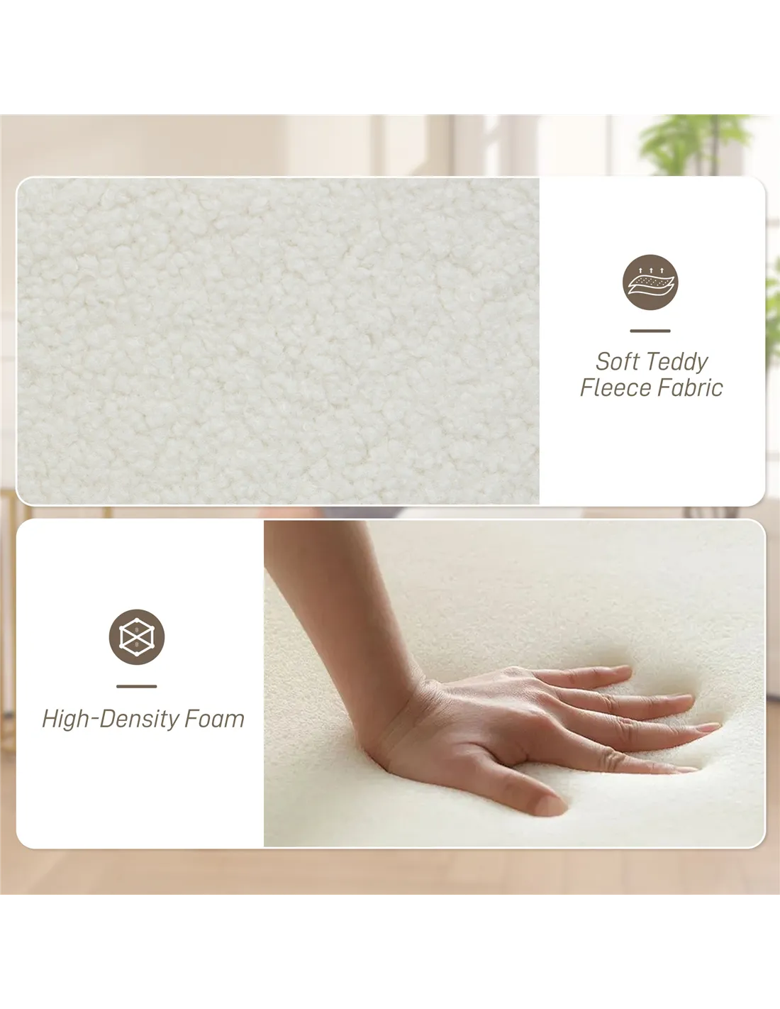 - Skin-friendly teddy fleece and dense foam offer luxurious comfort