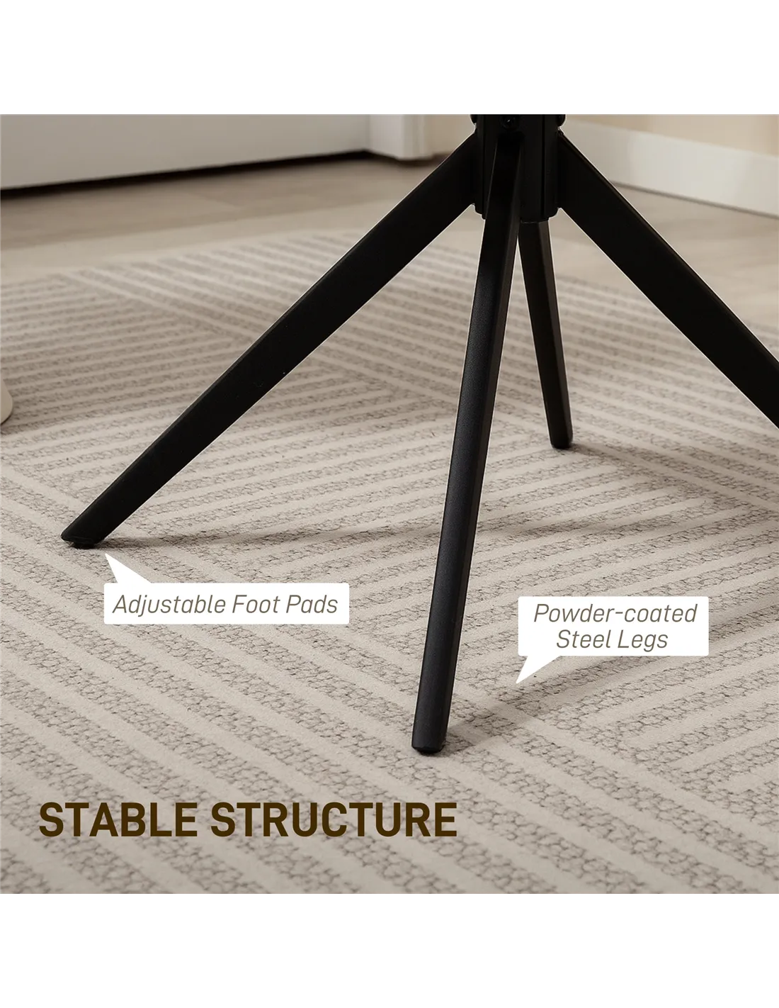 - Robust support ensured by powder-coated steel legs in spider structure