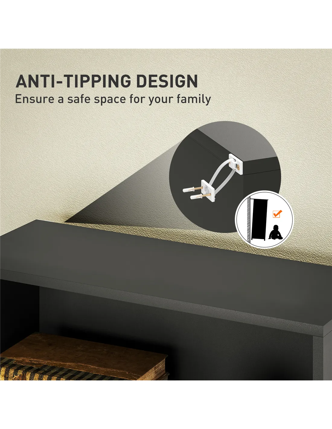 - Anti tipping straps to fix unit to a wall for safety