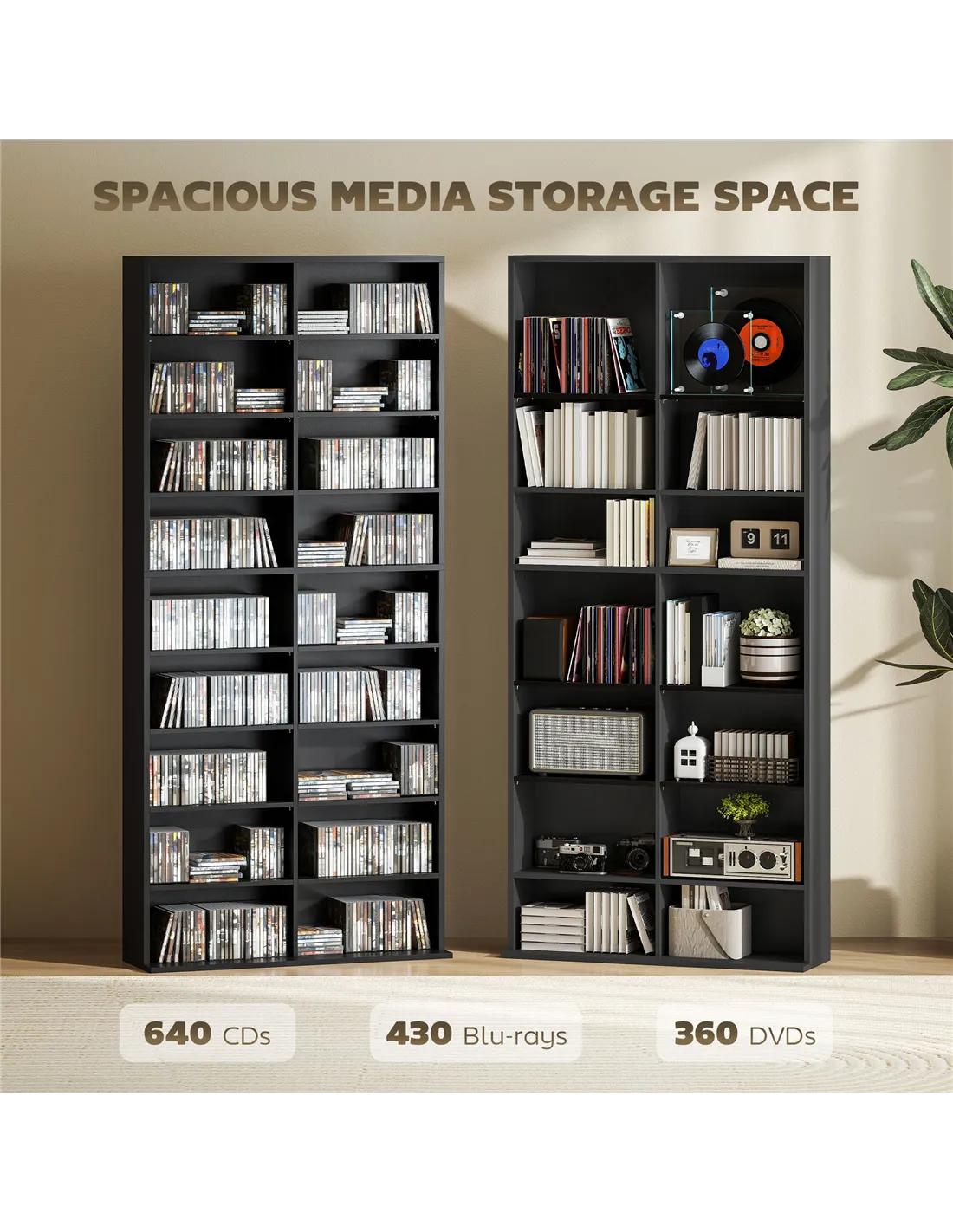 An easy and simple solution for keeping media stored, in the home and beyond - this HOMCOM storage unit. It holds up to 640 CDs, or 360 DVDs, with 14 adjustable shelves for customisable storage. The CD shelf is made from tough particle board with a smooth melamine coating, complete with anti-tipping straps included to secure to a wall.
