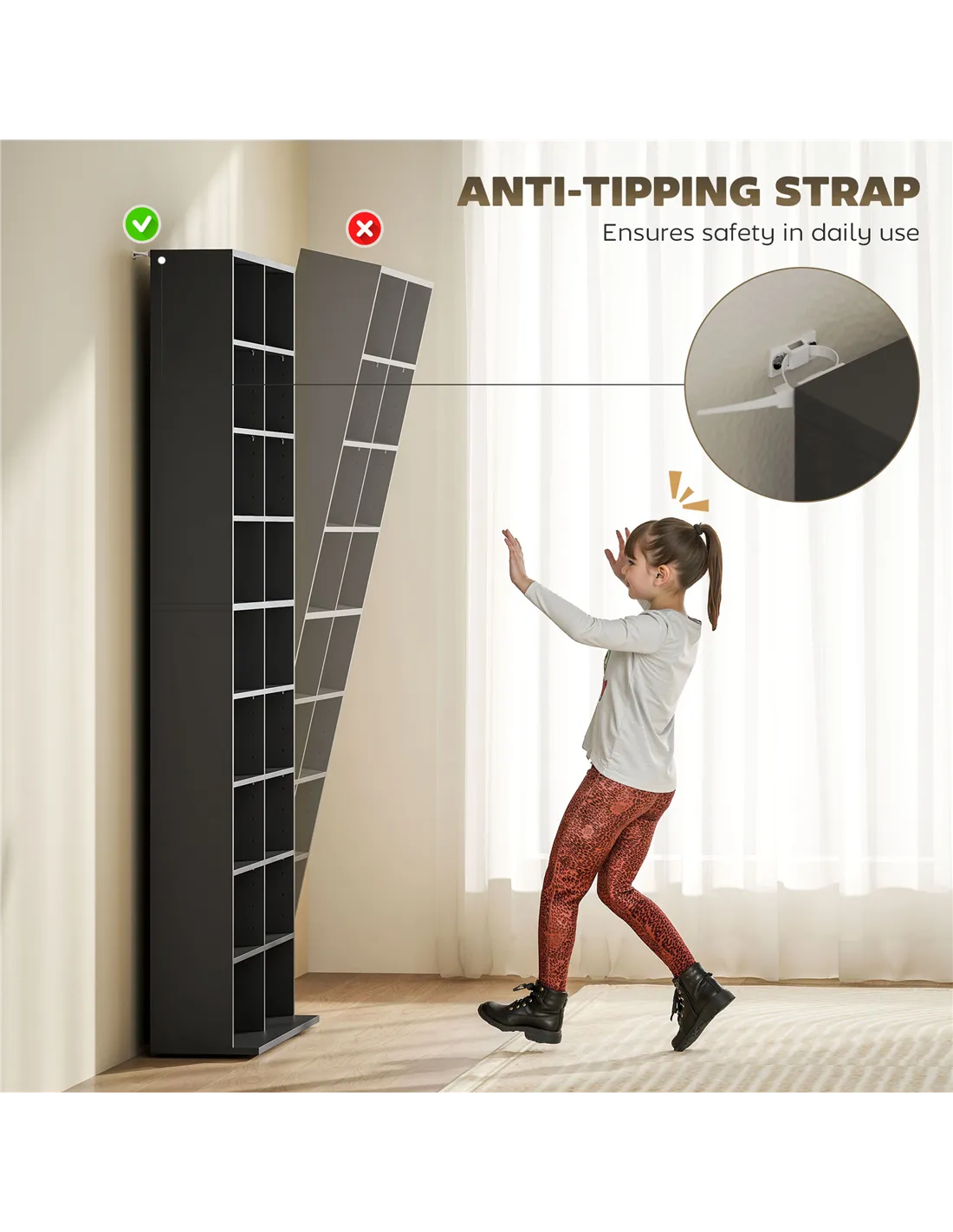 Absolutely. The 14 shelves are adjustable, enabling custom storage configurations for CDs, DVDs, books, or decorative pieces. - What safety features does this storage tower include?