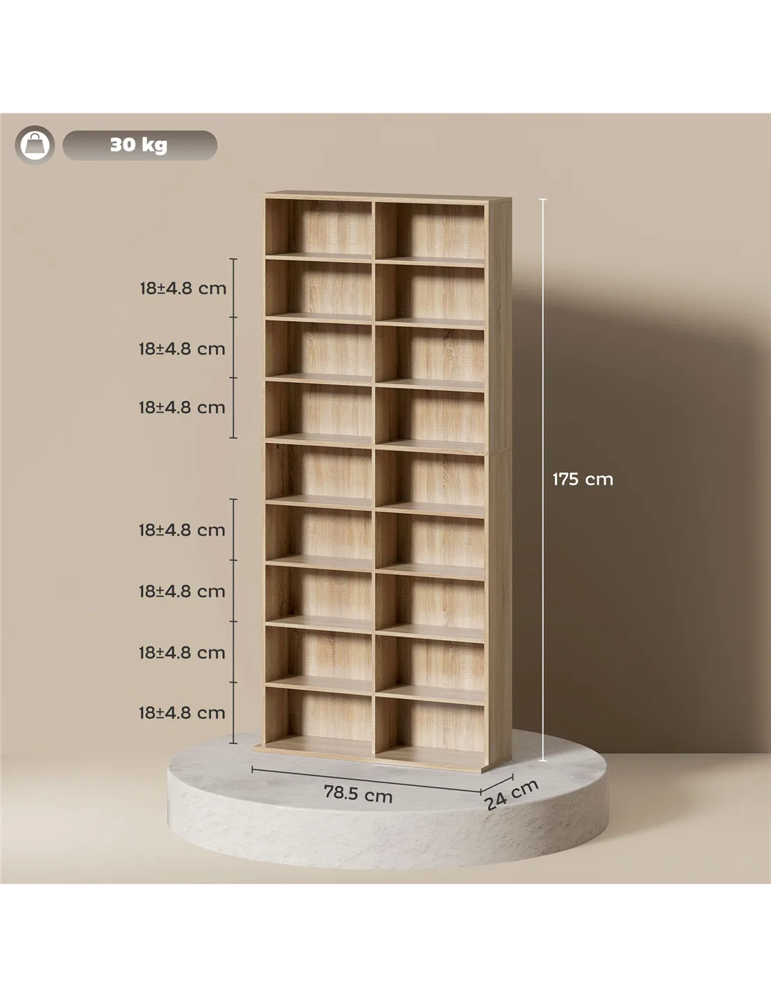 HOMCOM 640 CD Storage Tower - Nature Wood Finish