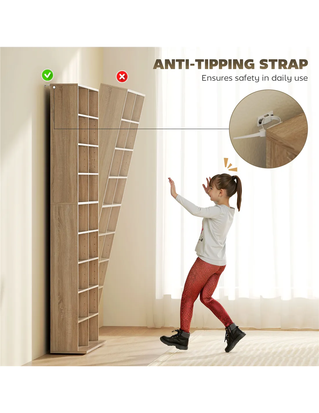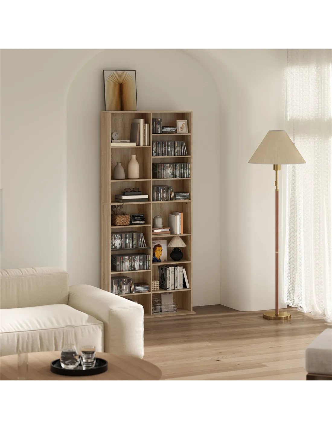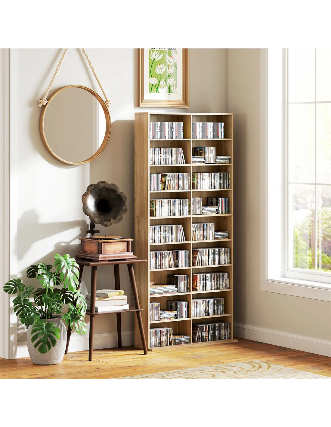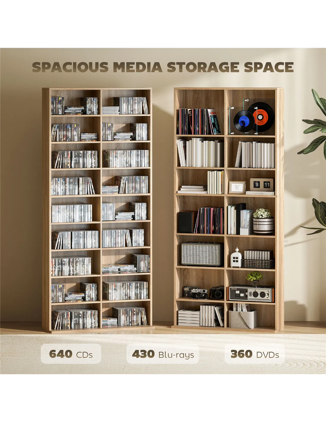 The HOMCOM 640 CD Storage Tower in Nature Wood Finish offers versatile storage solutions for a variety of living spaces. Ideal for music enthusiasts, it neatly organises up to 640 CDs or 360 DVDs, keeping your collection accessible and tidy. Beyond media, its adjustable shelves make it perfect for displaying books, decorative items, or small plants, adding a natural touch to your lounge, study, or bedroom. Thanks to its slim profile, it fits effortlessly into compact corners or narrow gaps, maximising space without overwhelming your room. The sturdy particleboard construction with a smooth melamine surface ensures durability while complementing a range of interior styles, from modern to rustic.