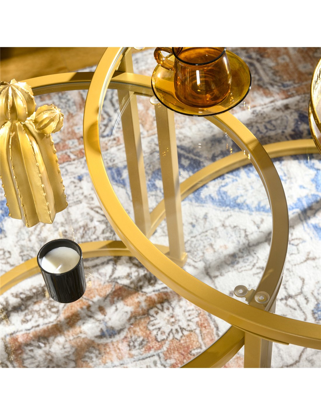 HOMCOM Coffee Table Set of 2, Modern Nest of Tables with Tempered Glass Top, Steel Frame for Living Room, Gold Tone
