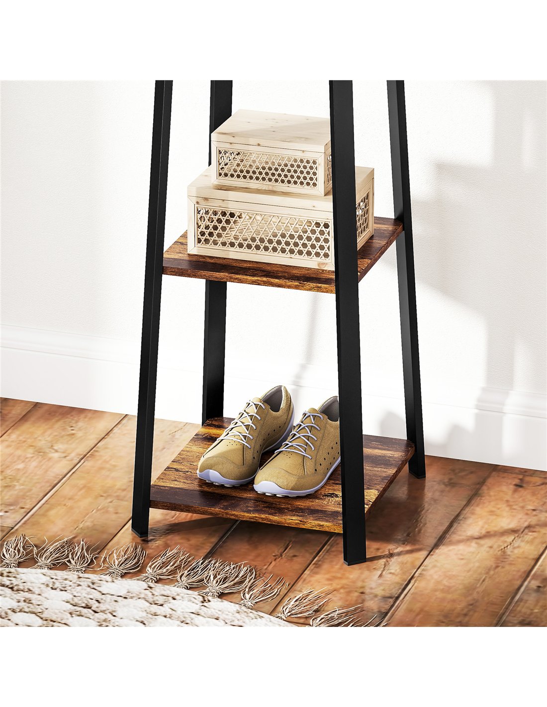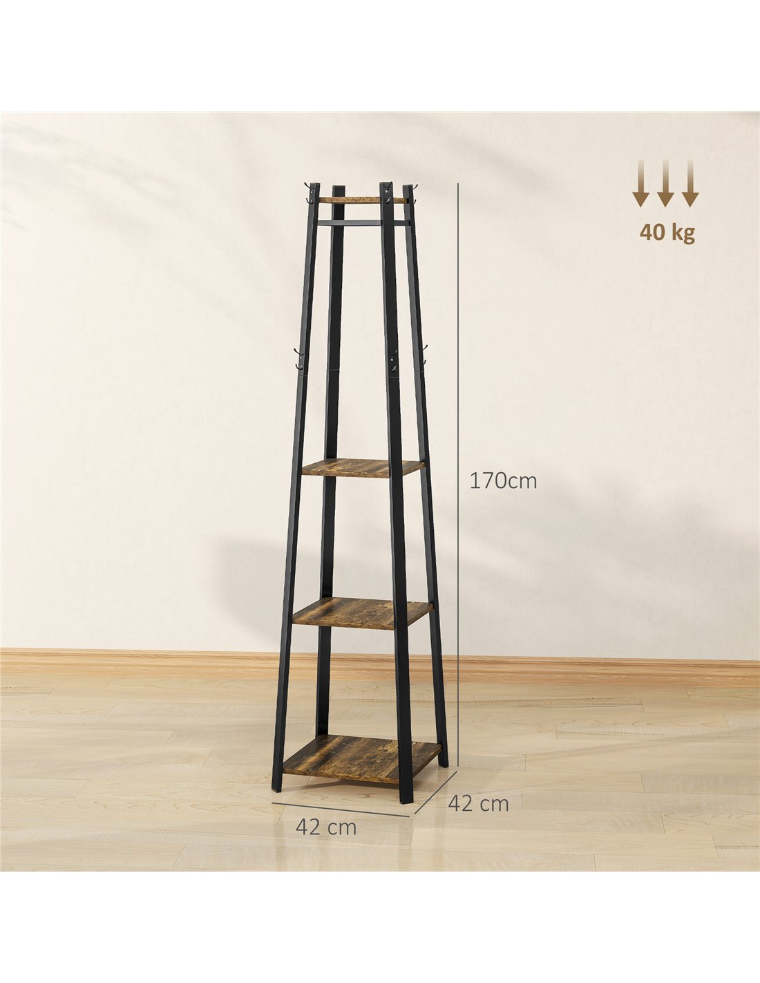 - Eight double hooks for holding jackets, scarves, bags and hats