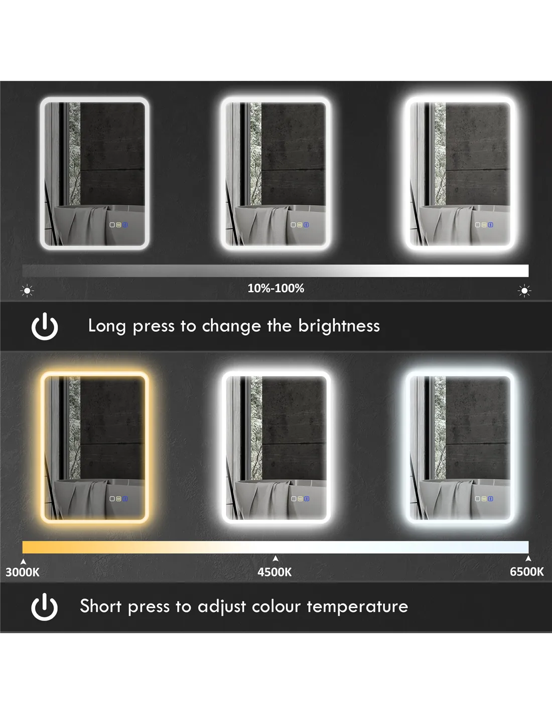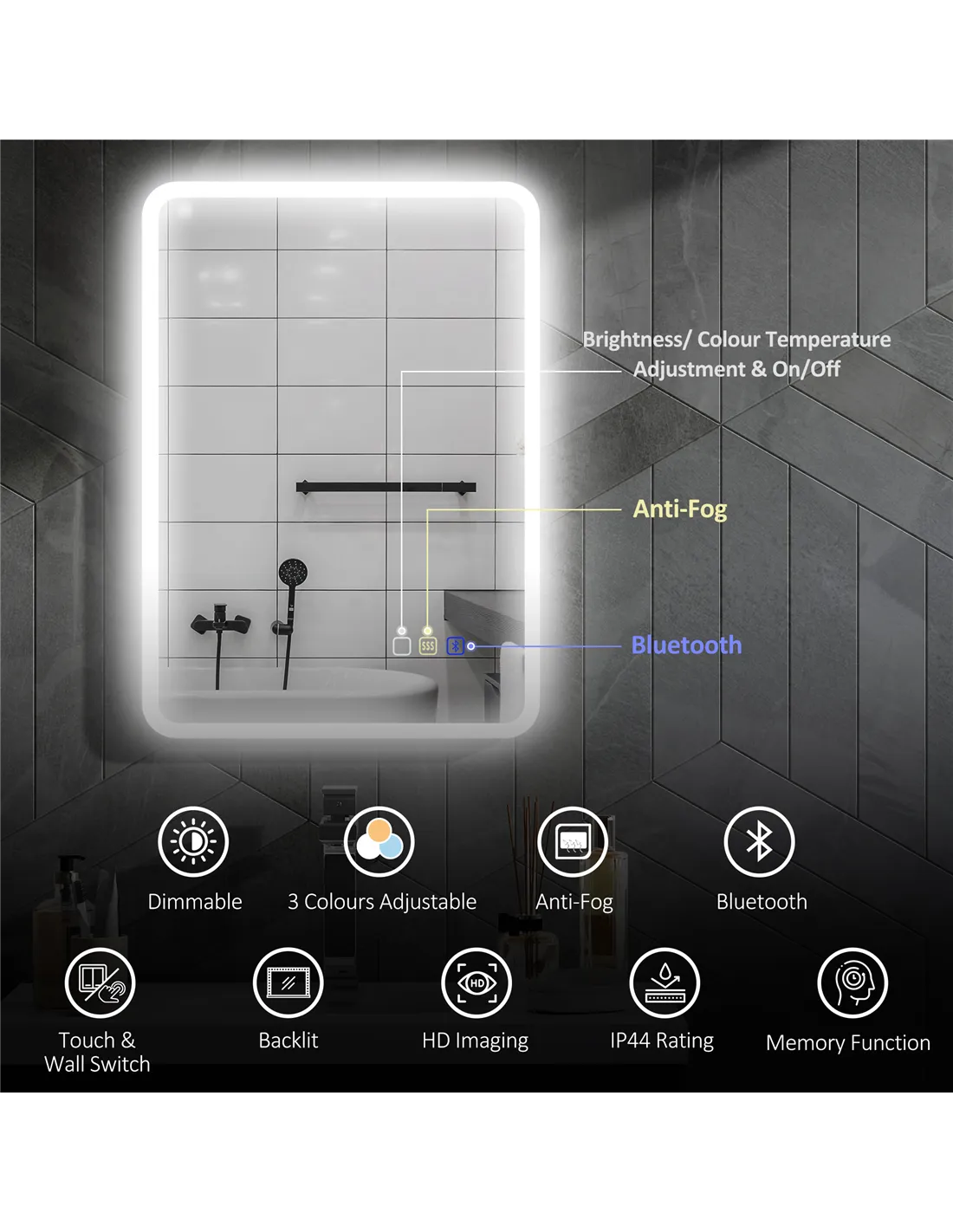 Start the day right, to the right soundtrack with this HOMCOM bathroom mirror. It has Bluetooth connectivity, so all you have to do is pair your phone. The 258 bead LED light flicks between warm light, natural light or cool white, with adjustable brightness - set to how you need. The demister pad prevents fog build-up - see yourself clearly in this mirror at all times.