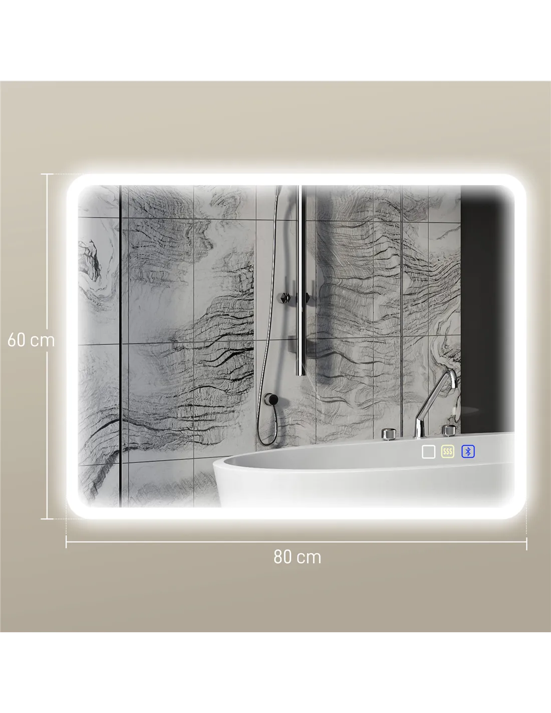 HOMCOM 80 x 60cm LED Bathroom Mirror, with Bluetooth - Silver Tone