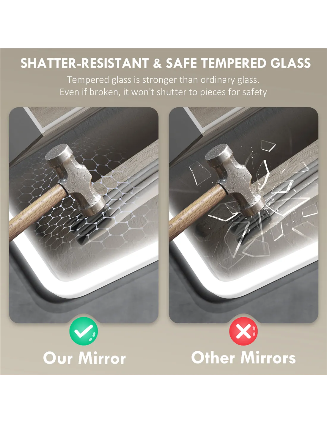 - Shatter-resistant HD mirror is safe and provides a clear and bright reflection
