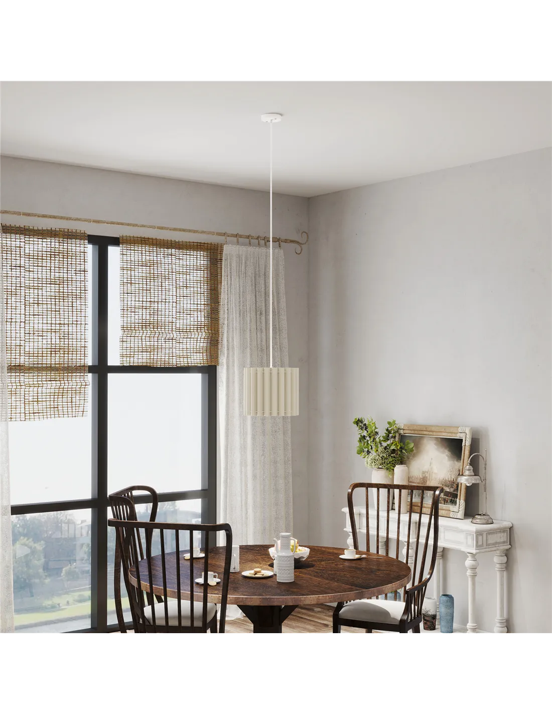 The HOMCOM linen pendant light is a versatile lighting solution designed to enhance various living spaces. Ideal for bedrooms, it creates a cosy atmosphere with its soft, diffused glow, perfect for bedside illumination. In living rooms, it adds a modern yet warm touch, complementing contemporary or minimalist décor. This pendant lamp also suits kitchens and hallways, providing functional lighting while maintaining an elegant aesthetic. Thanks to its adjustable cable length and compatibility with E27 bulbs, including energy-efficient LEDs, it can be tailored to suit different ceiling heights and lighting preferences. Whether used as a statement piece or subtle ambient light, this hanging lamp effortlessly elevates your home’s interior.