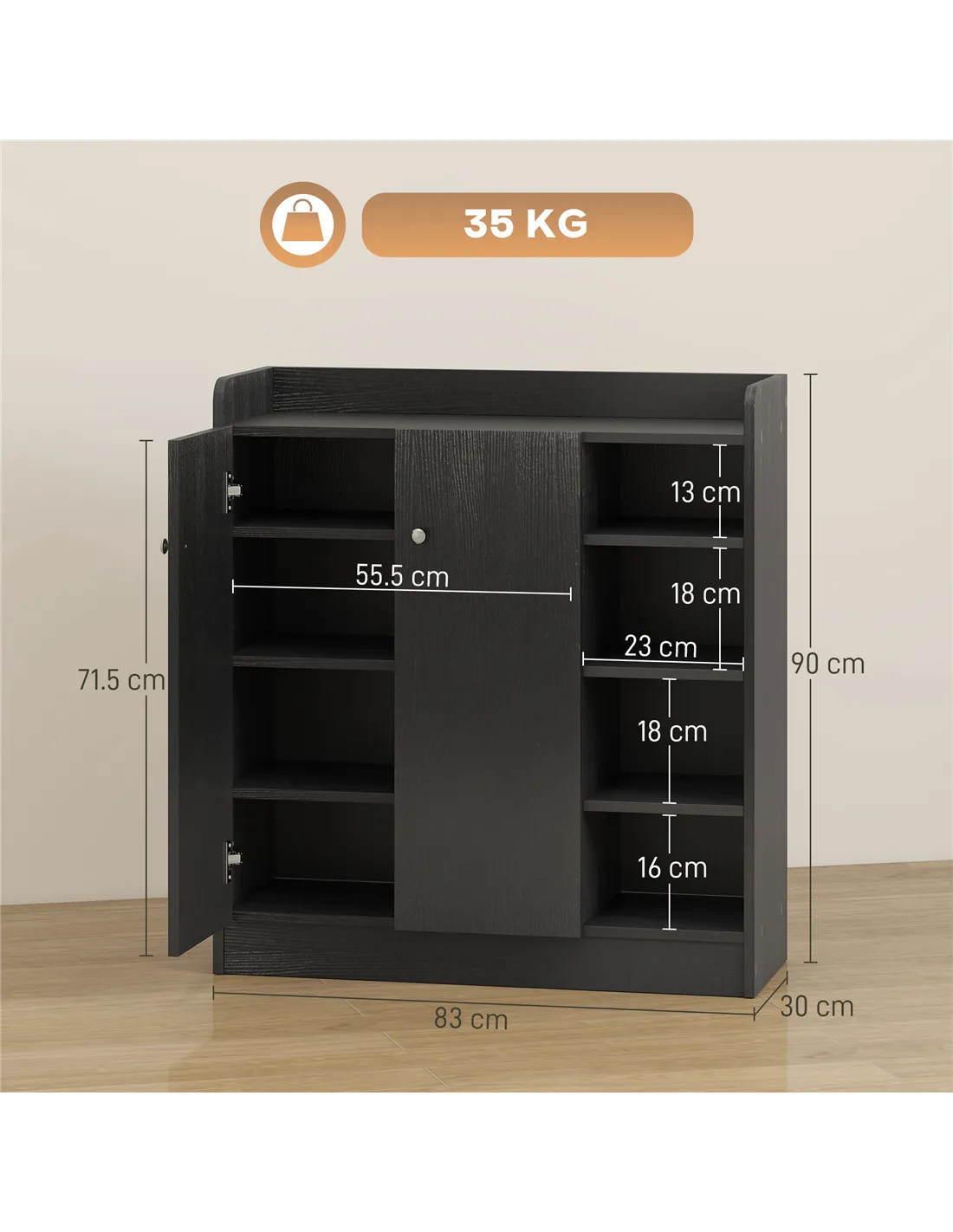 - Right Shelves Size: 23W x 28D x 13/18/18/16H cm