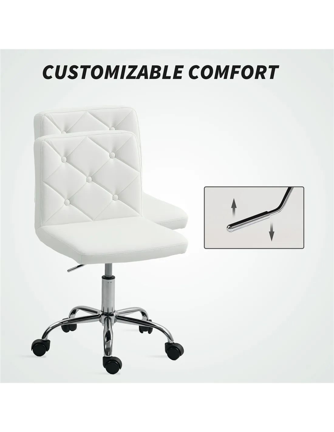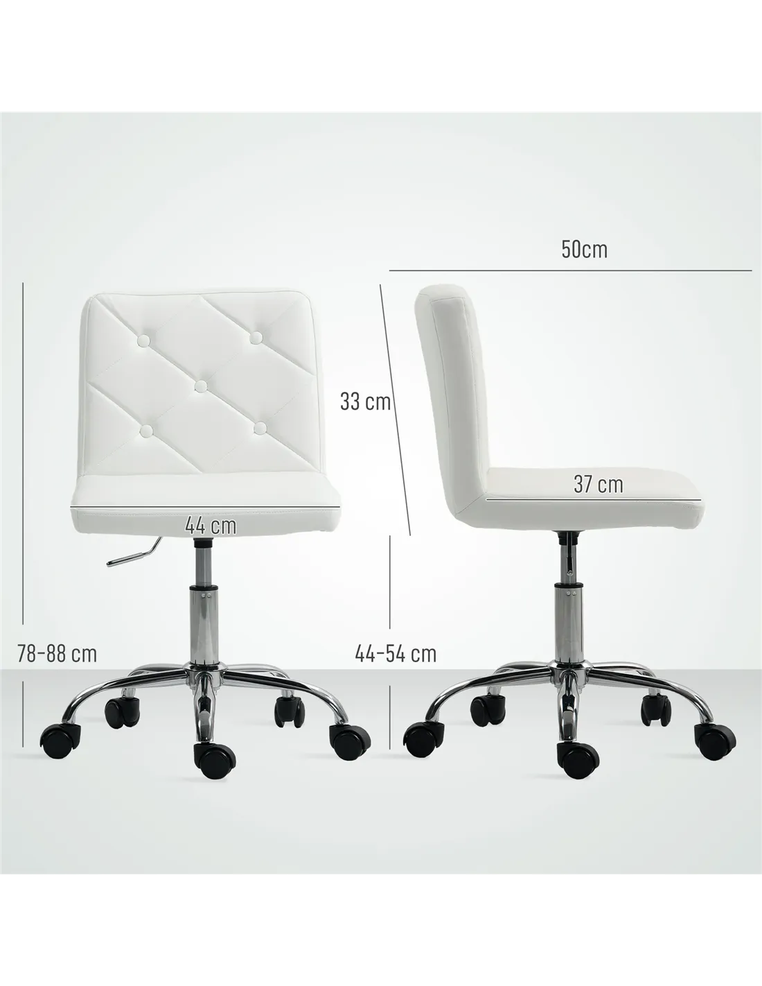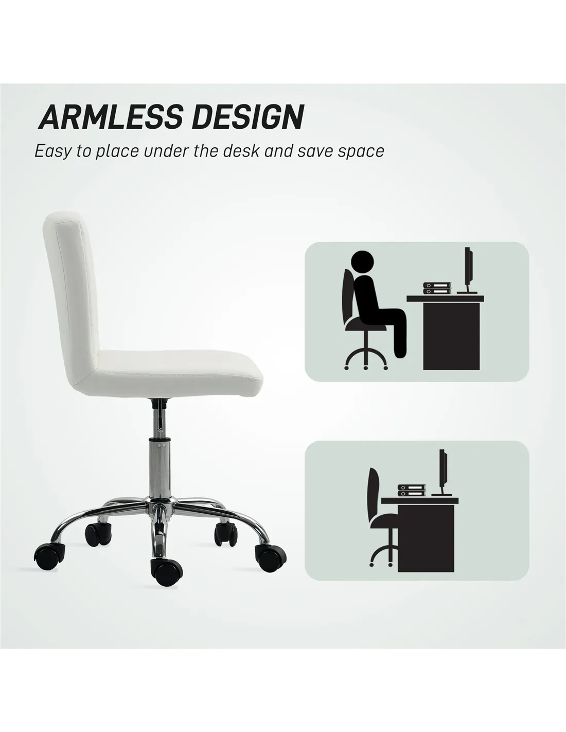 HOMCOM PU Leather Armless Office Chair, Modern Vanity Computer Swivel Chair with Rolling Wheels and Adjustable Height for Home Study, Bedroom, White