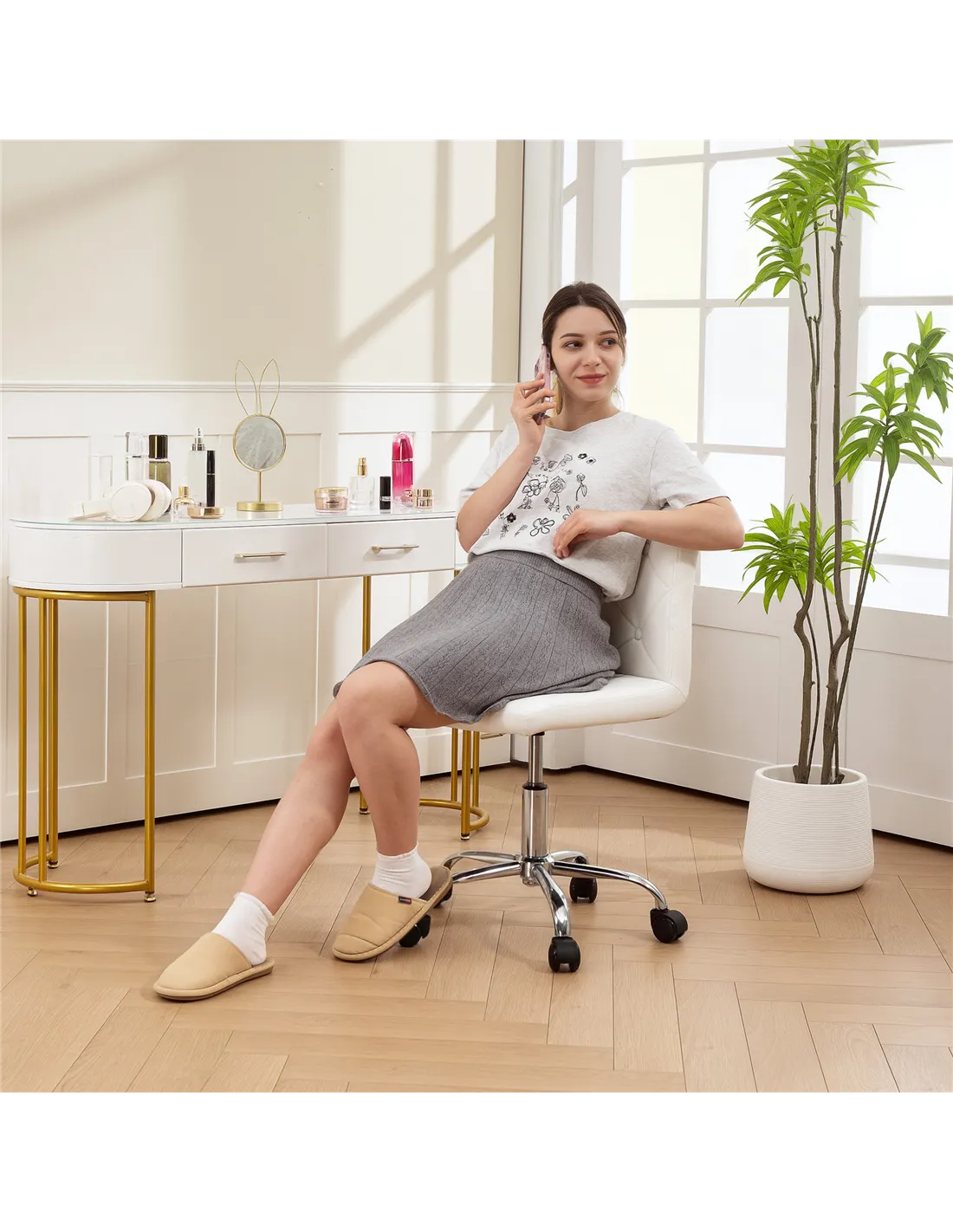- Perfect as a vanity chair in bedrooms or dressing areas, combining elegance with practical mobility.