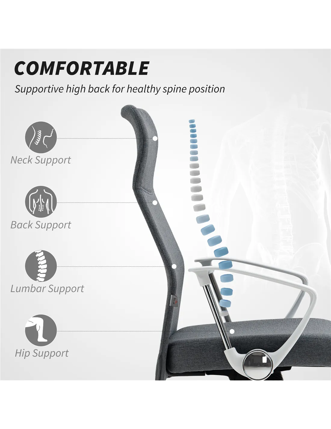 Discover the comfort of the HOMCOM high back office chair, designed with a high and curved back that supports from head to thigh, ensuring you stay comfy all day. Enjoy the smooth tilt function for a gentle rock, suitable for those pensive moments. Wrapped in the breathable linen-feel fabric, this office desk chair is the great addition to any home office or work setup.