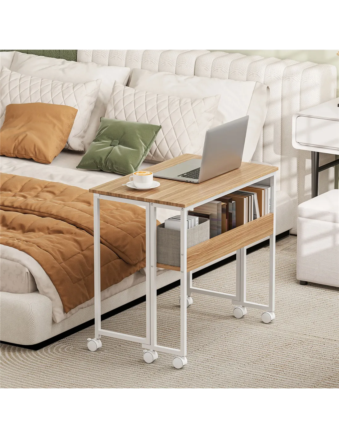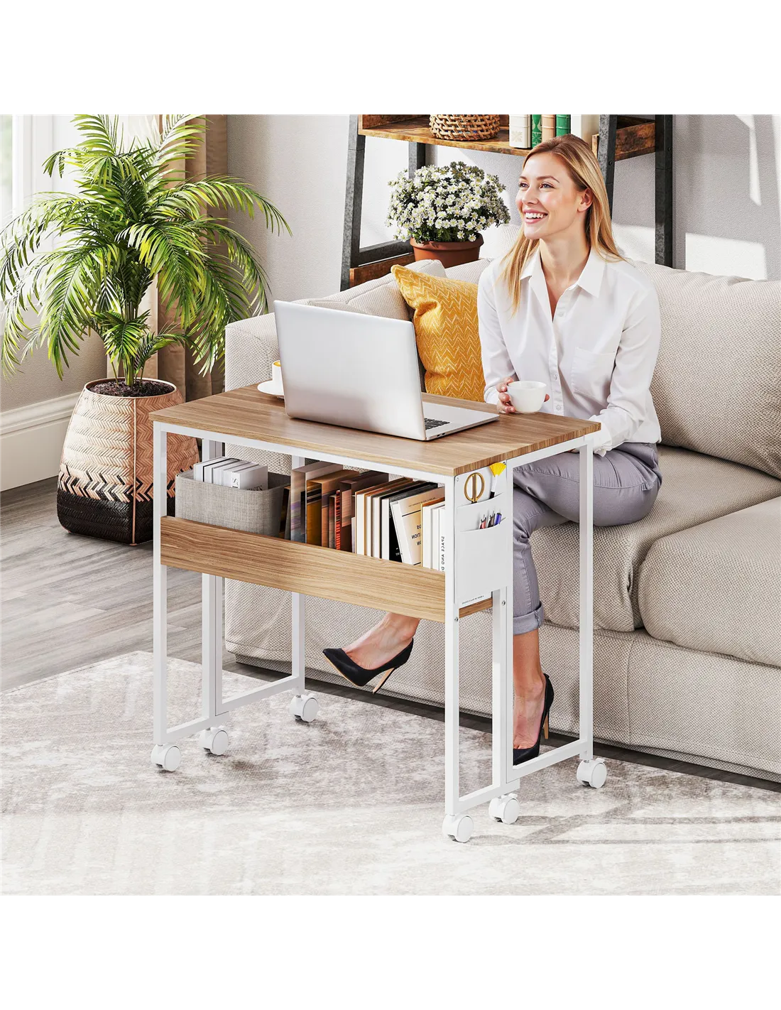 Maximise work space, even in small spaces with this HOMCOM drop leaf computer table. When folded, it is 21 cm and extends to 50 cm - plenty of room for you to work. Features a lower shelf and side bag for close-by holding space for all the essentials. Plus, you can wheel this study desk anywhere with ease, thanks to six 360° swivel casters - complete with four brakes.