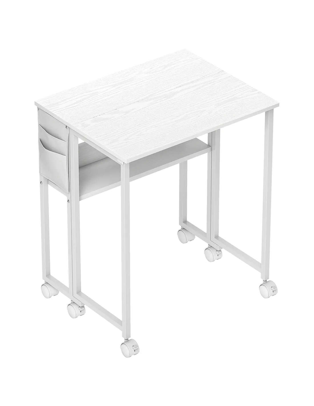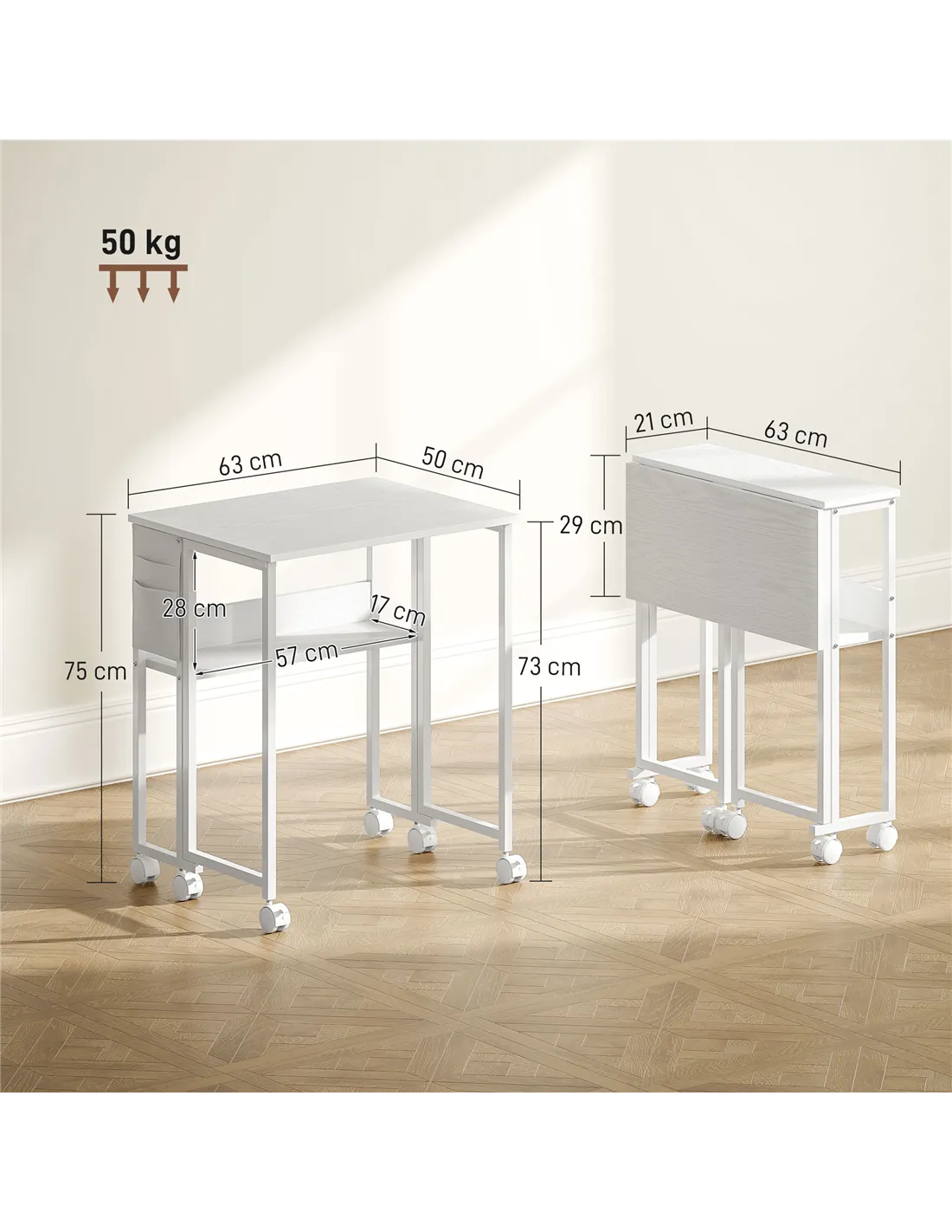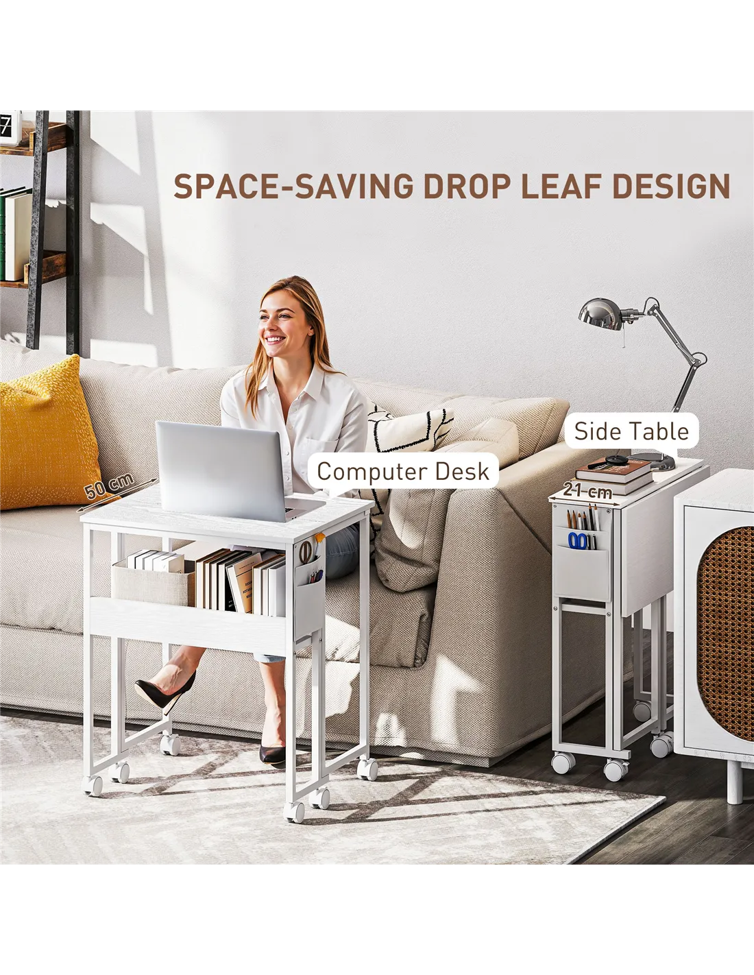 Maximise work space, even in small spaces with this HOMCOM drop leaf computer table. When folded, it is 21 cm and extends to 50 cm - plenty of room for you to work. Features a lower shelf and side bag for close-by holding space for all the essentials. Plus, you can wheel this study desk anywhere with ease, thanks to six 360° swivel casters - complete with four brakes.