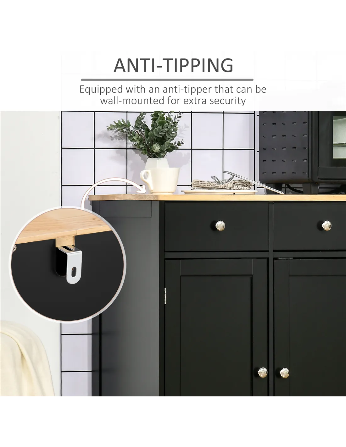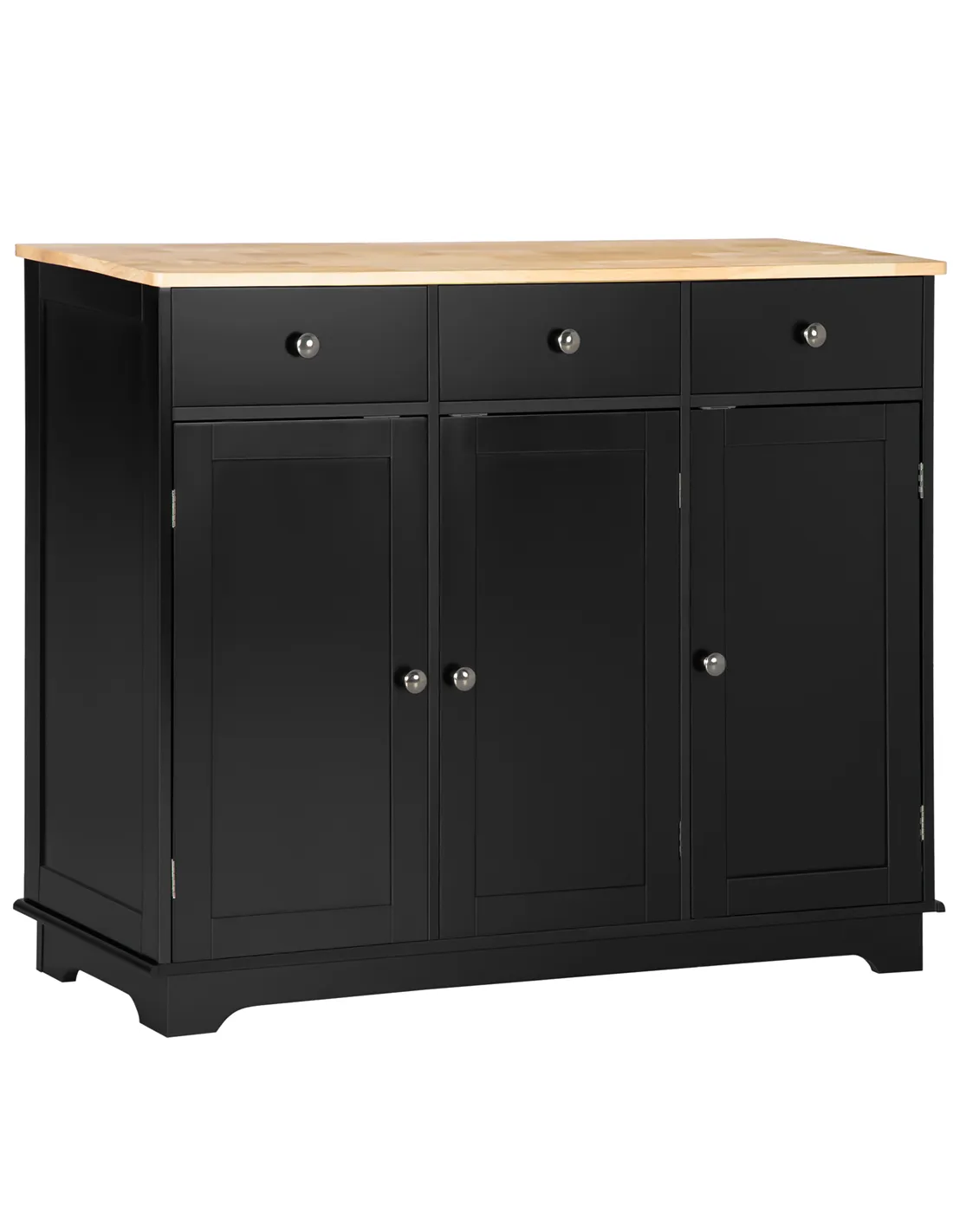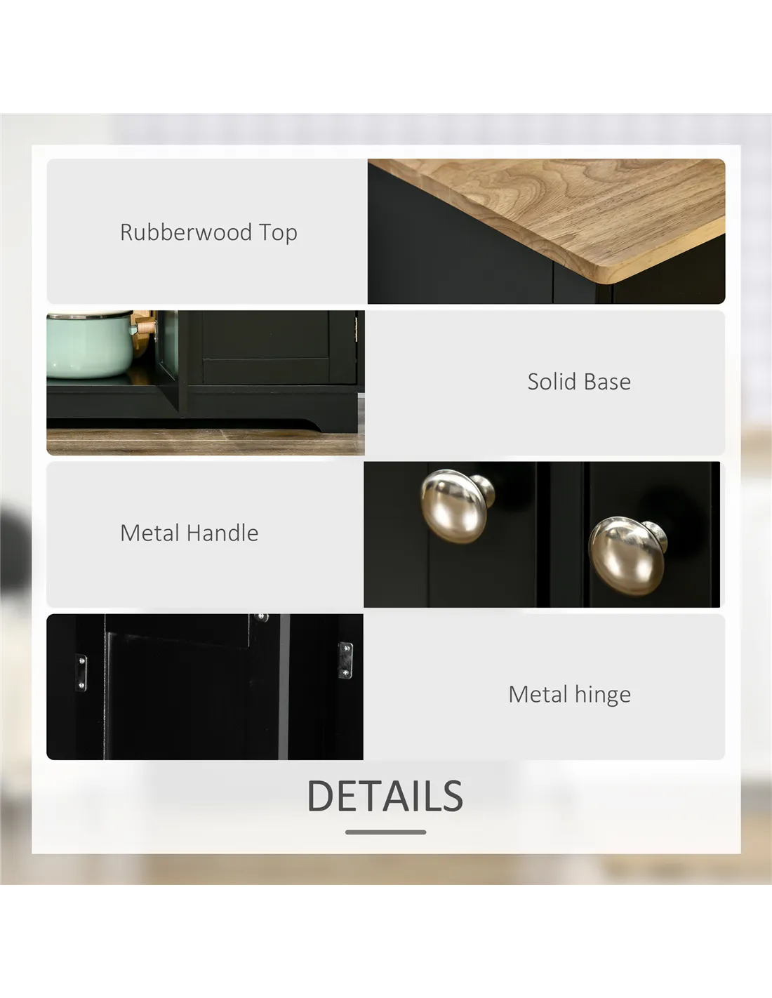 HOMCOM Sideboard with Rubberwood Top and Adjustable Shelves for Dining Room, Kitchen - Black
