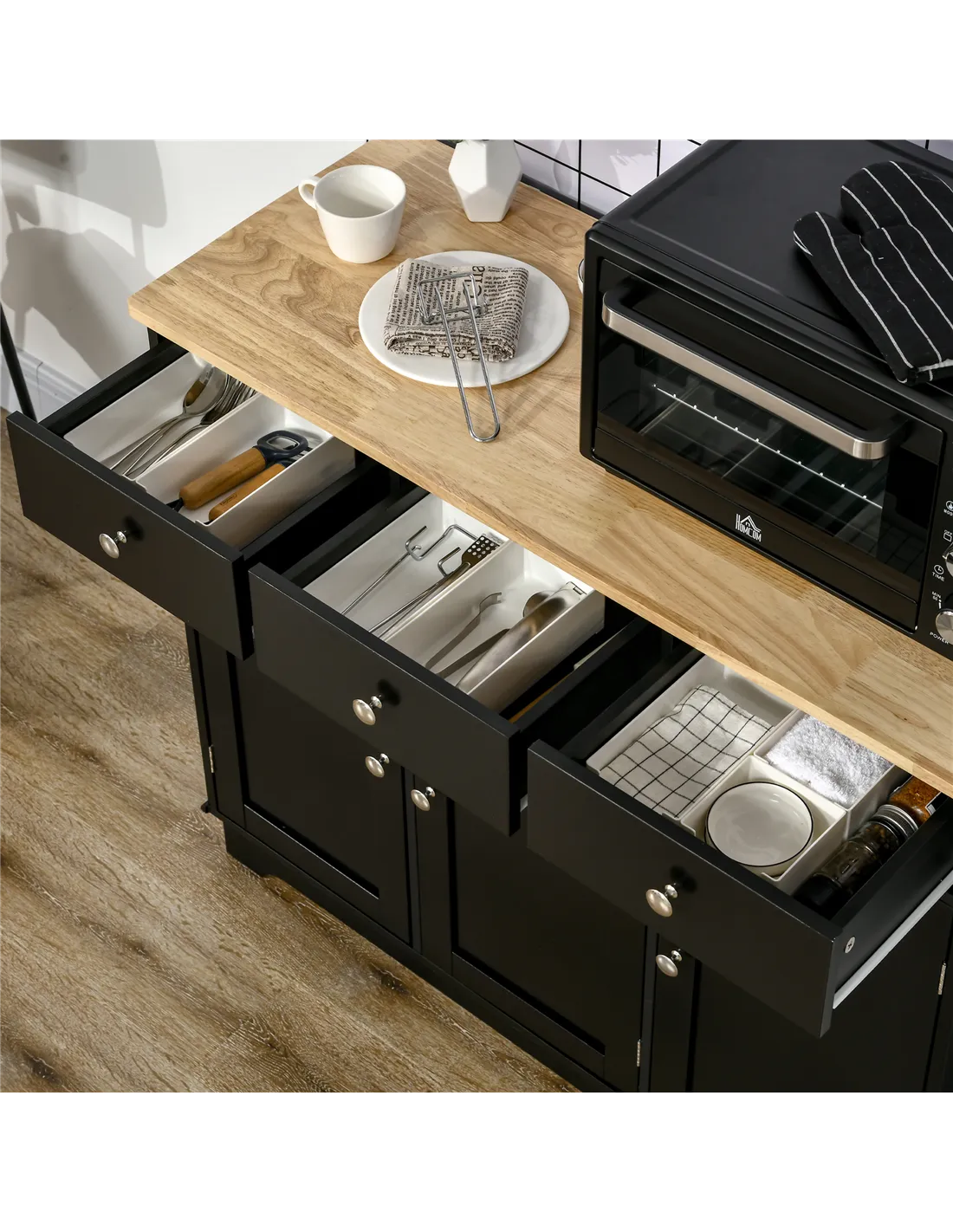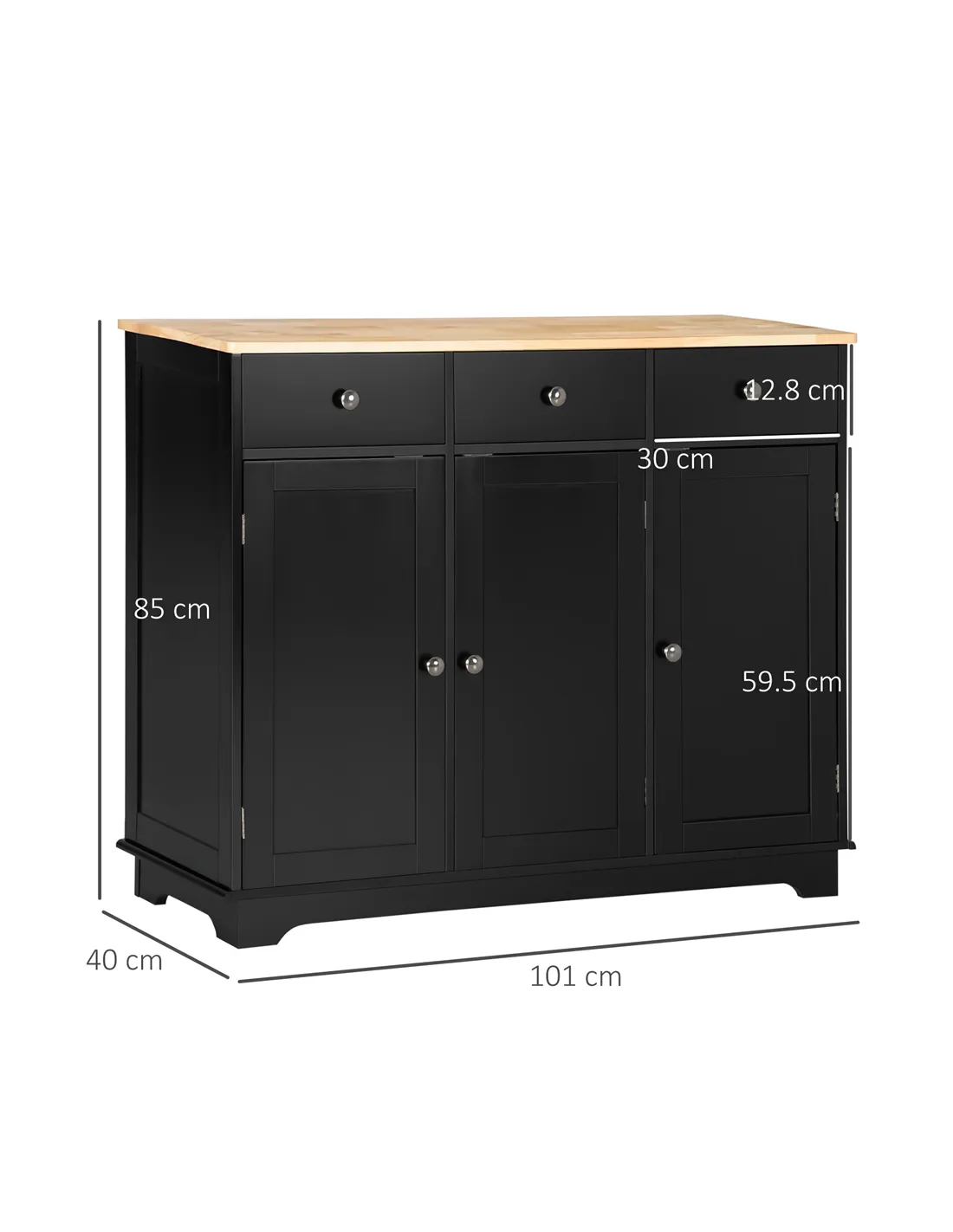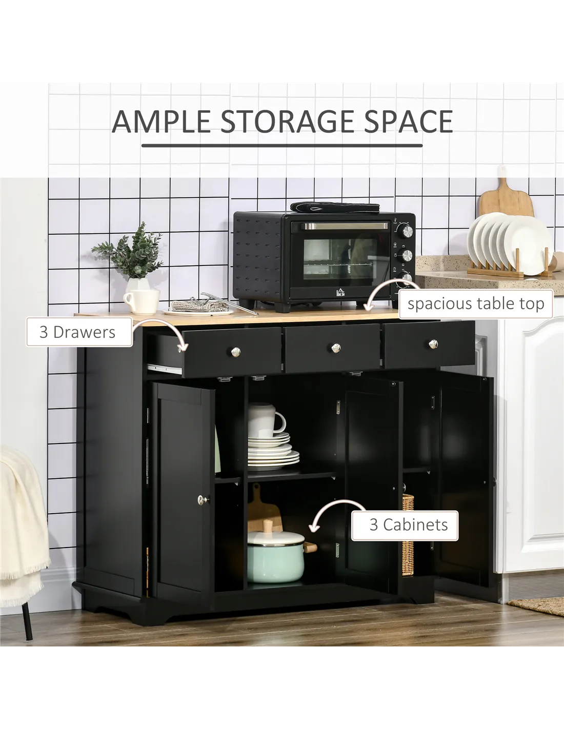 HOMCOM Sideboard with Rubberwood Top and Adjustable Shelves for Dining Room, Kitchen - Black