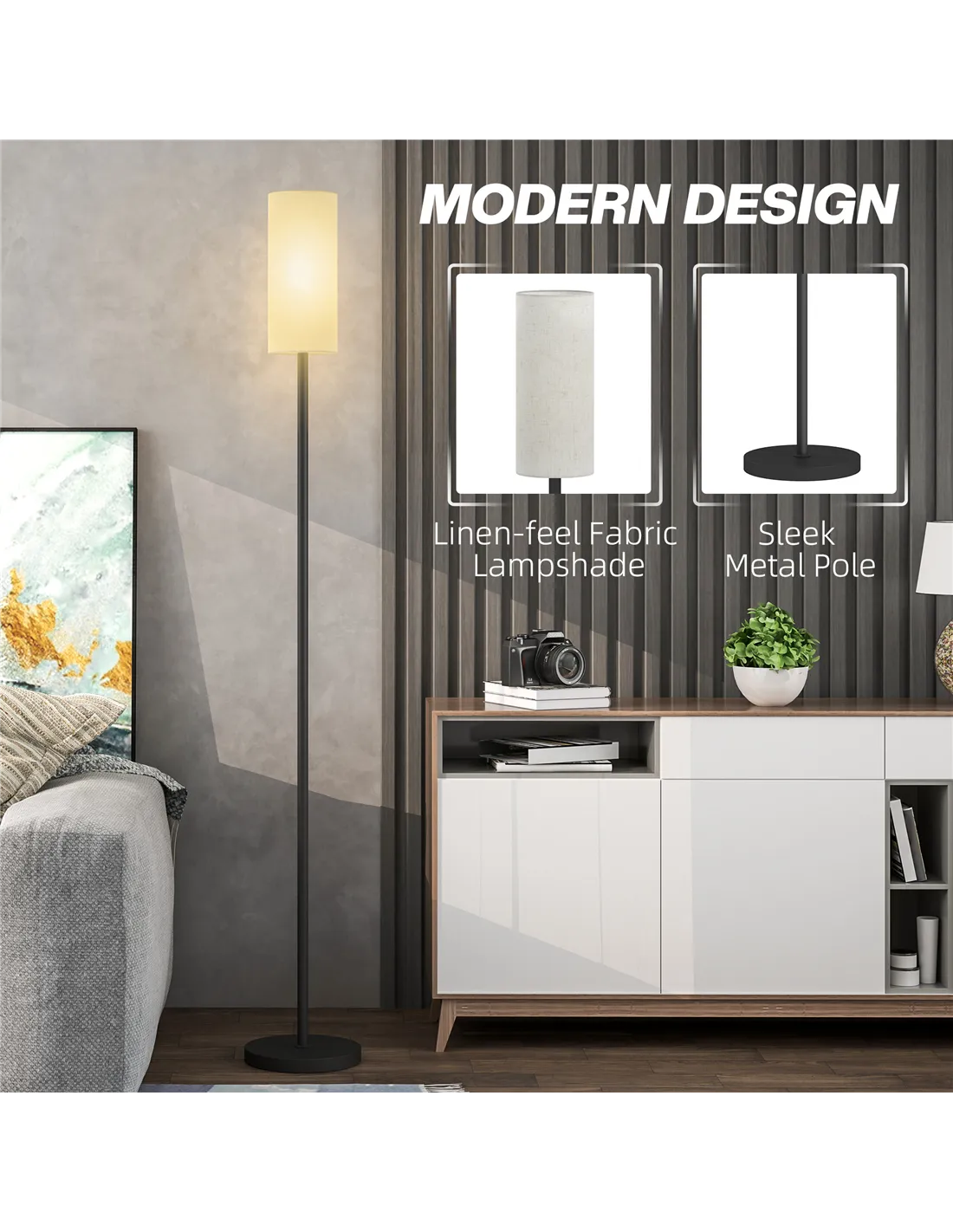 HOMCOM Floor Lamp for Living Room, Modern Standing Lamp with Linen Shade & Foot Switch, Minimalist Tall Pole Lampshade for Bedroom, Office, White