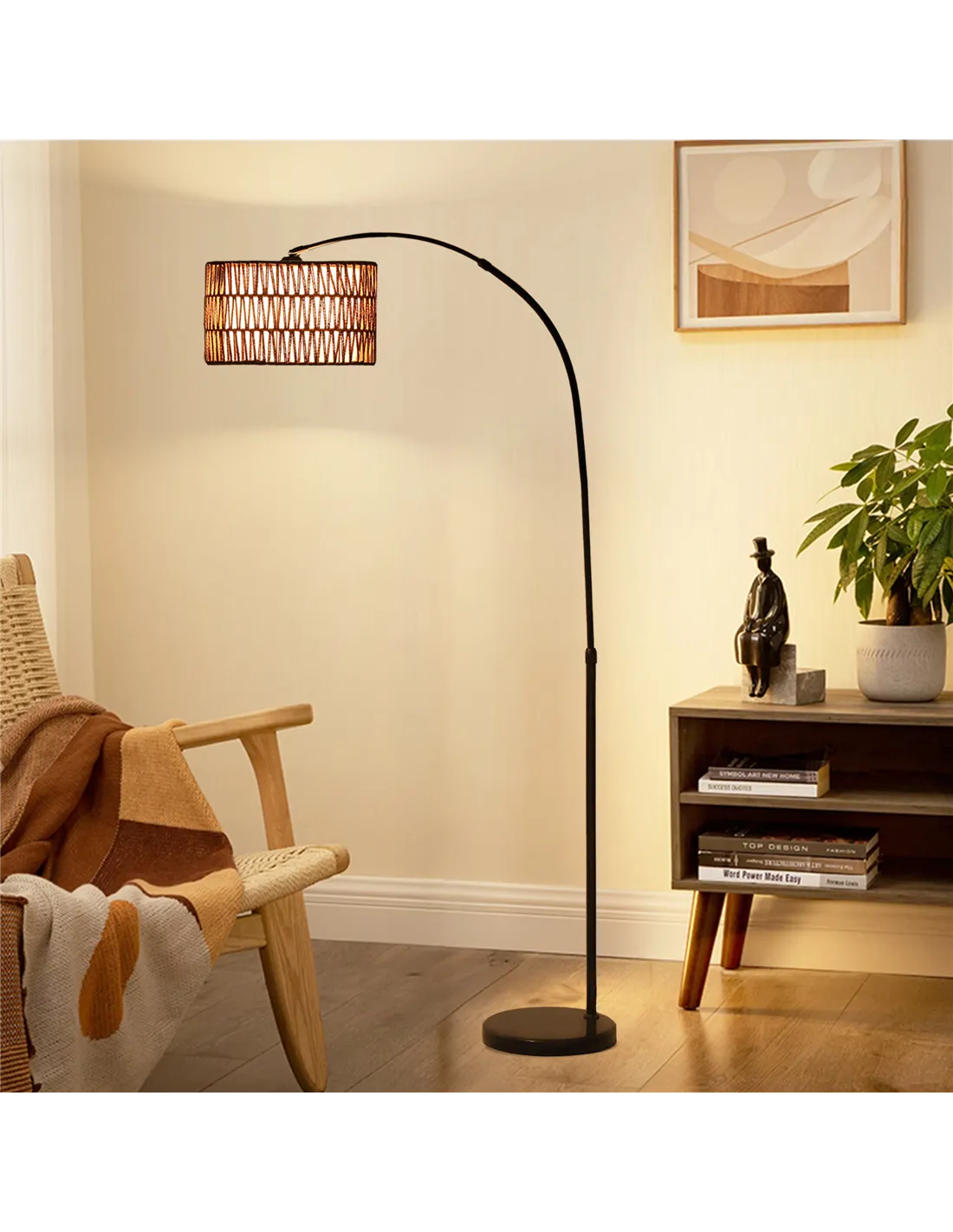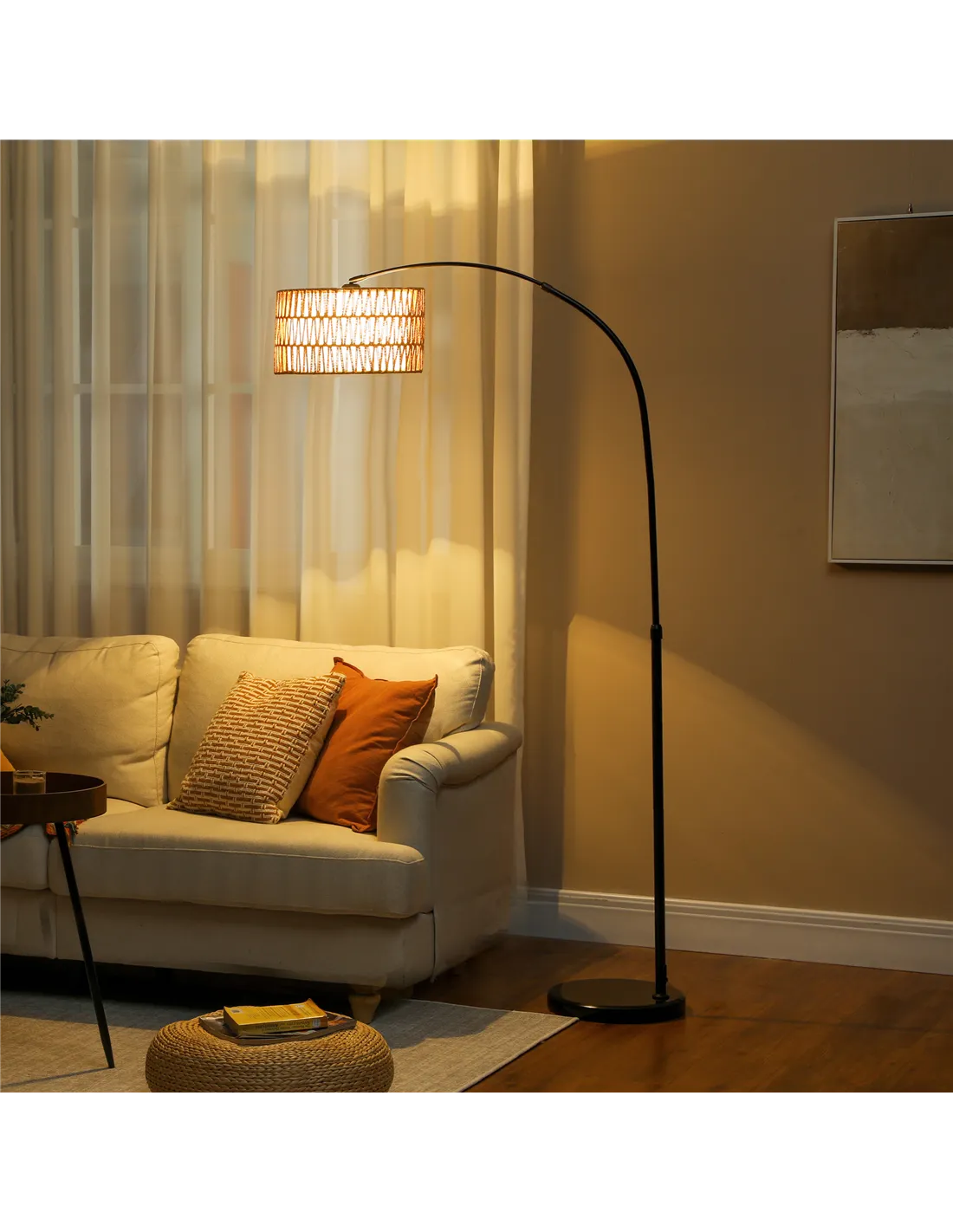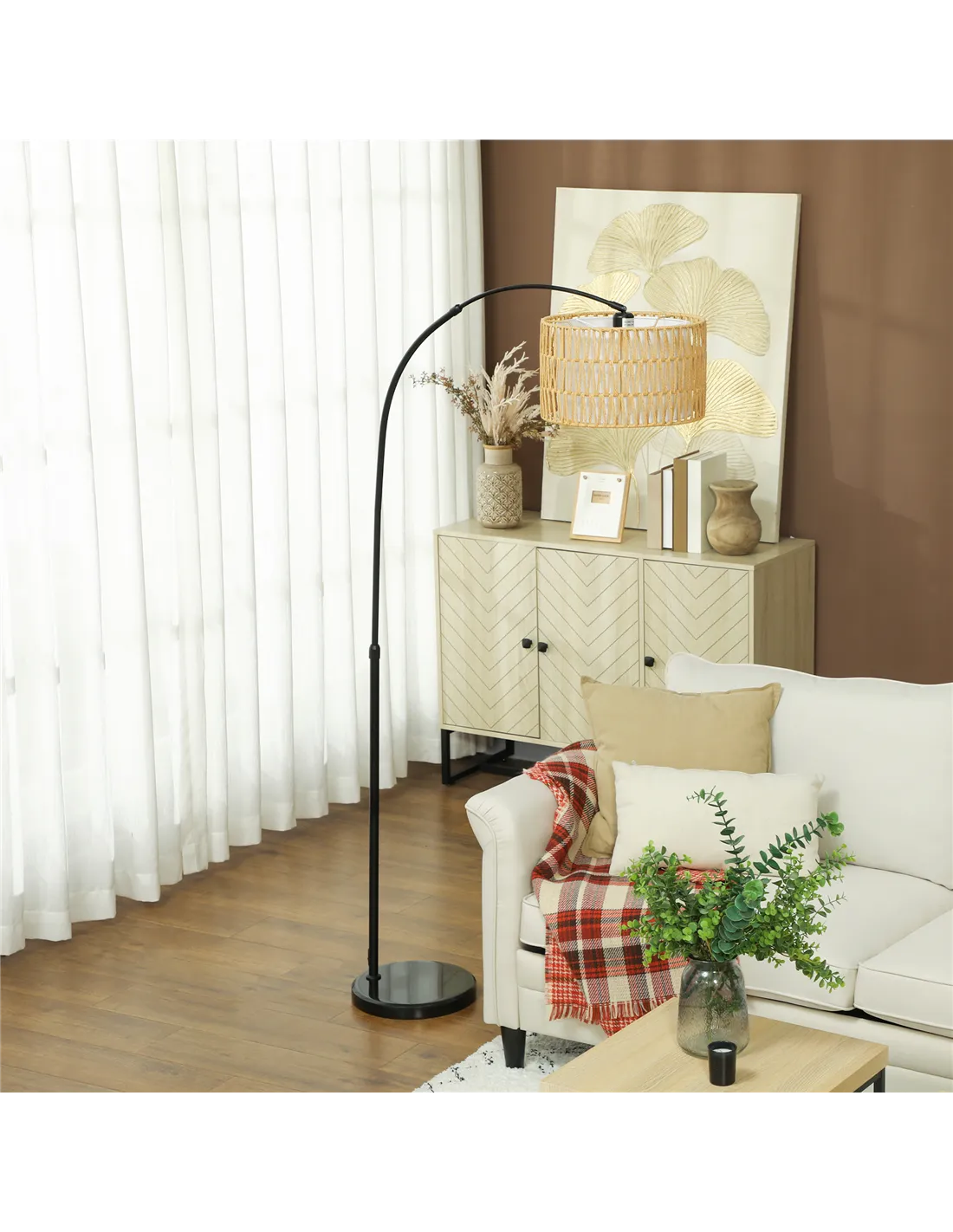 The Homcom rattan floor lamp is a versatile lighting solution designed to complement various interiors across UK homes. Its adjustable height and minimalist design make it ideal for creating a warm, inviting atmosphere in living rooms, bedrooms, or home offices. Position it beside a cosy armchair to enhance your reading nook or use it as a statement piece in a farmhouse-style lounge. The dual-layer hemp rope shade diffuses light softly, perfect for ambient evening lighting or subtle task illumination. Thanks to its sleek black metal frame and marble base, it blends effortlessly with modern and rustic décor alike.