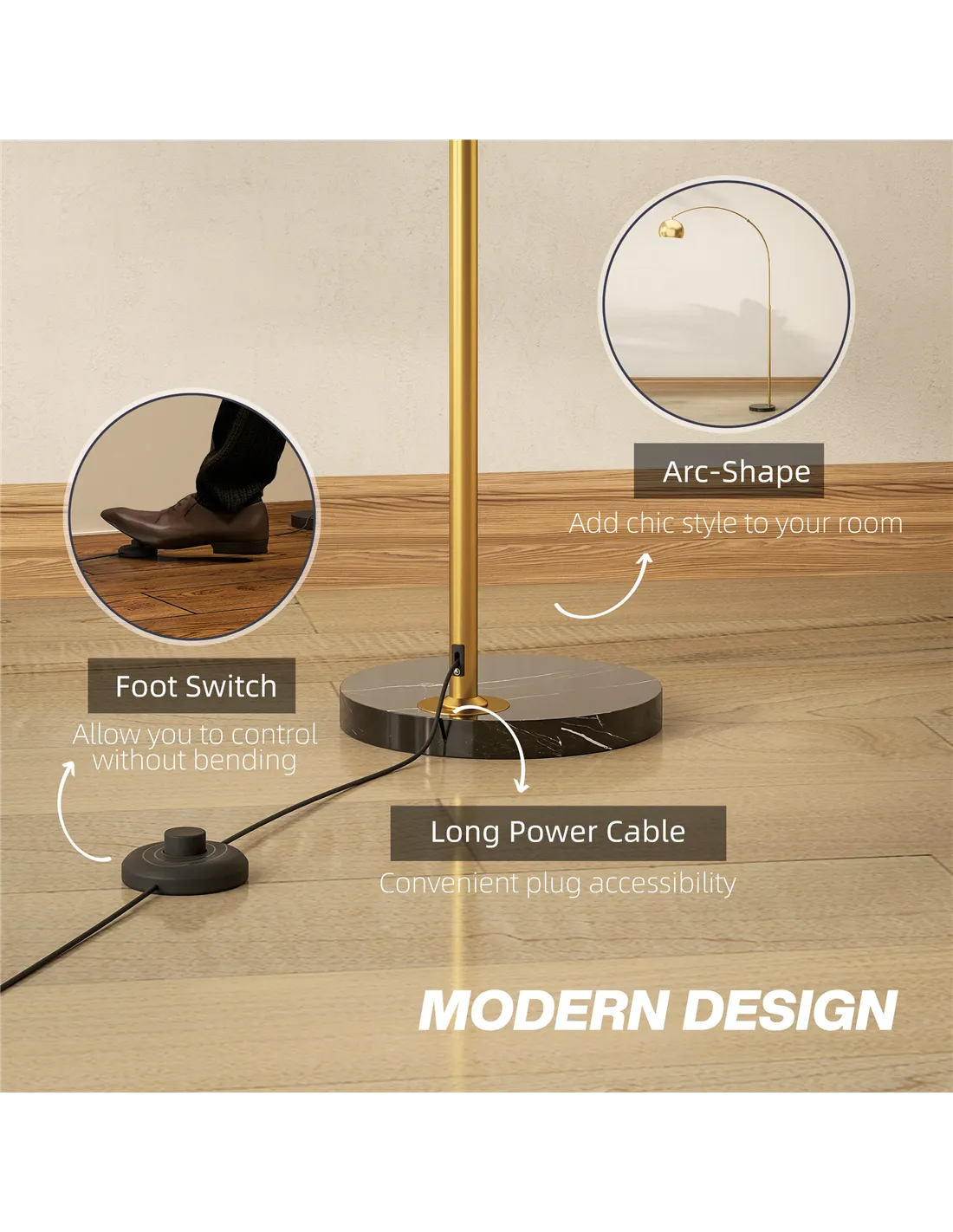 - Arched floor lamp for a unique and modern look