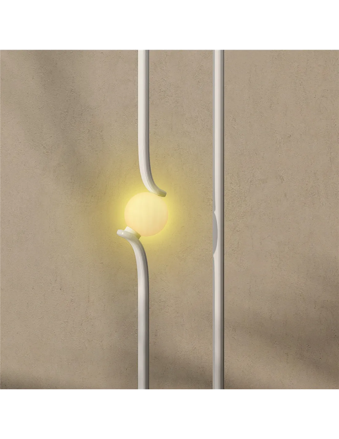 - LED strip with a hanging spherical glass shade mimics musical notes, enhancing the design