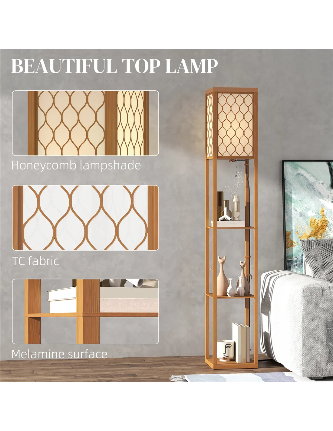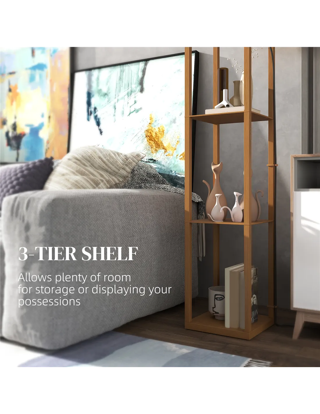 HOMCOM Three-Shelf Standing Lamp - Natural