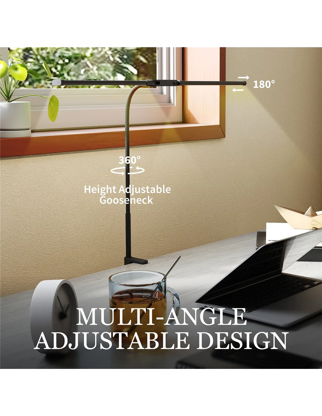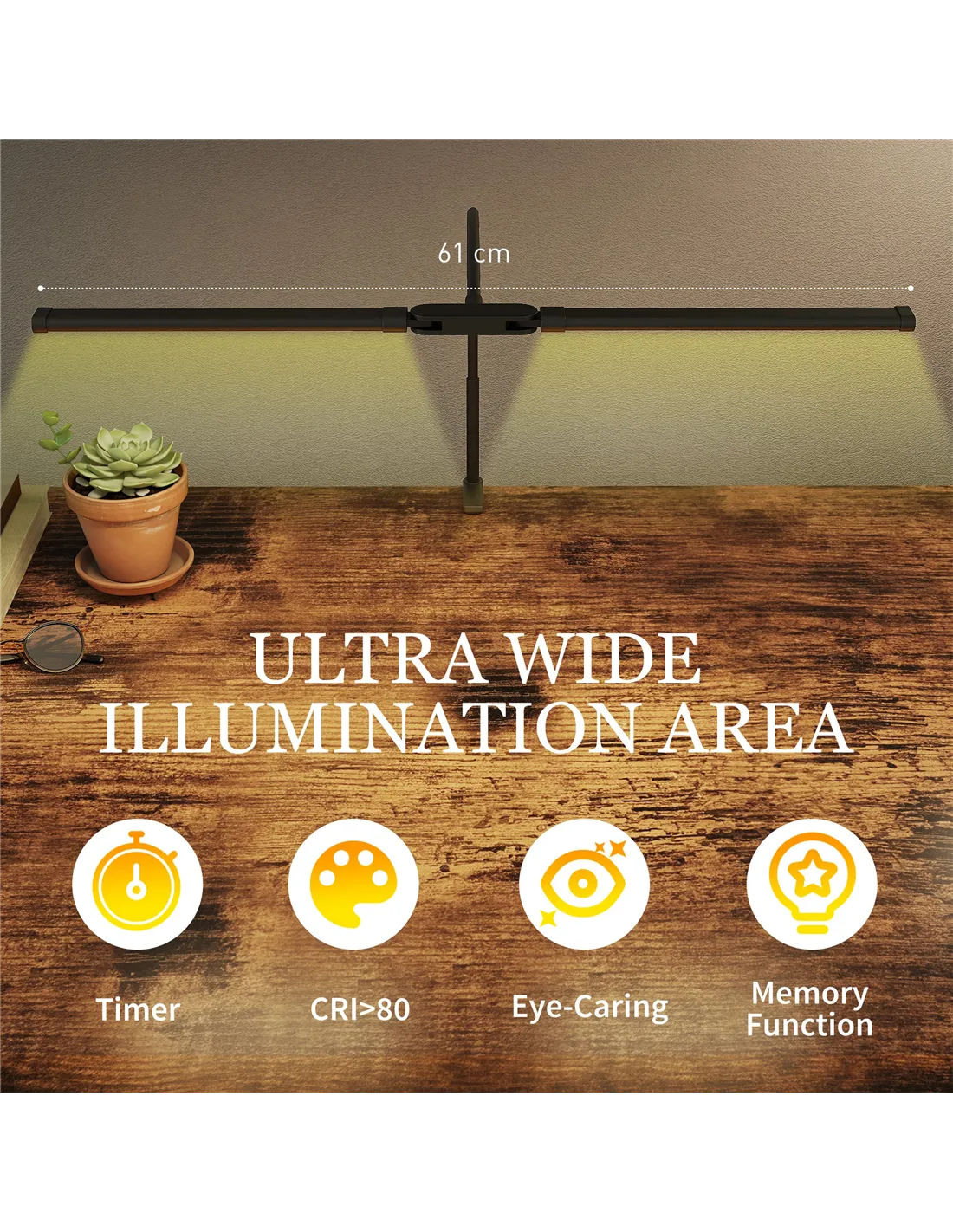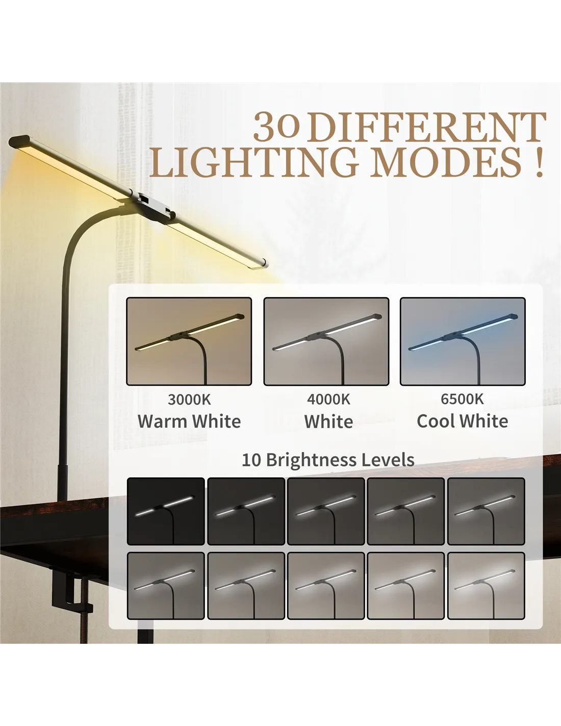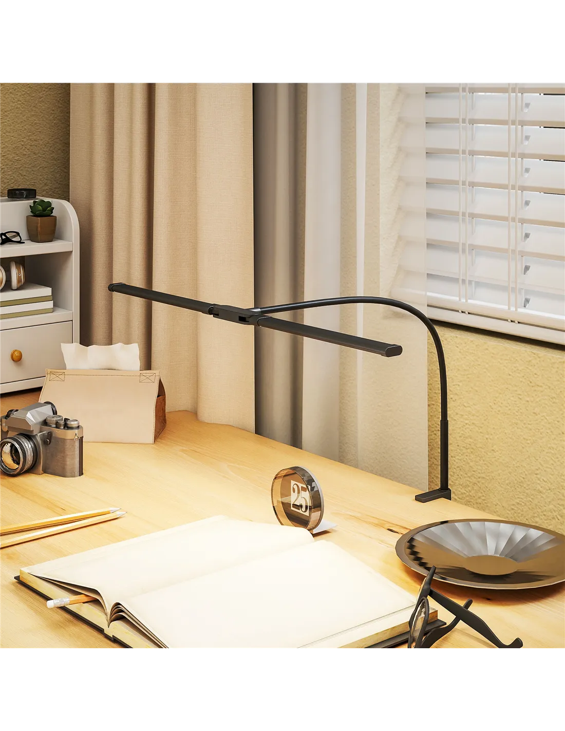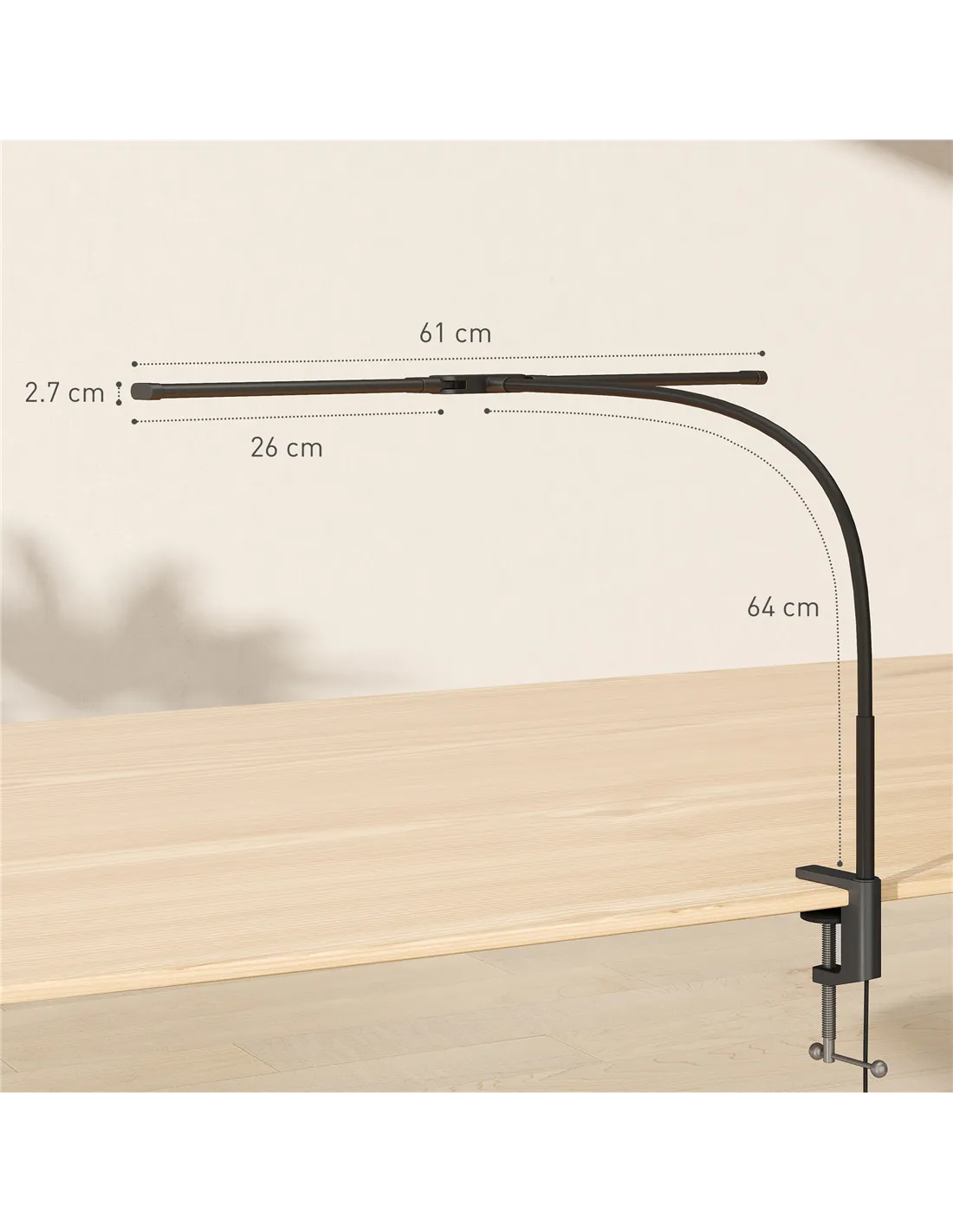 HOMCOM LED Desk Lamp with Clamp, Double Head Table Lamp with 3 Colour Modes & 10 Brightness Levels, Flexible Gooseneck Reading Desk Light with Timer and Memory Function for Study, Office, Work, Black