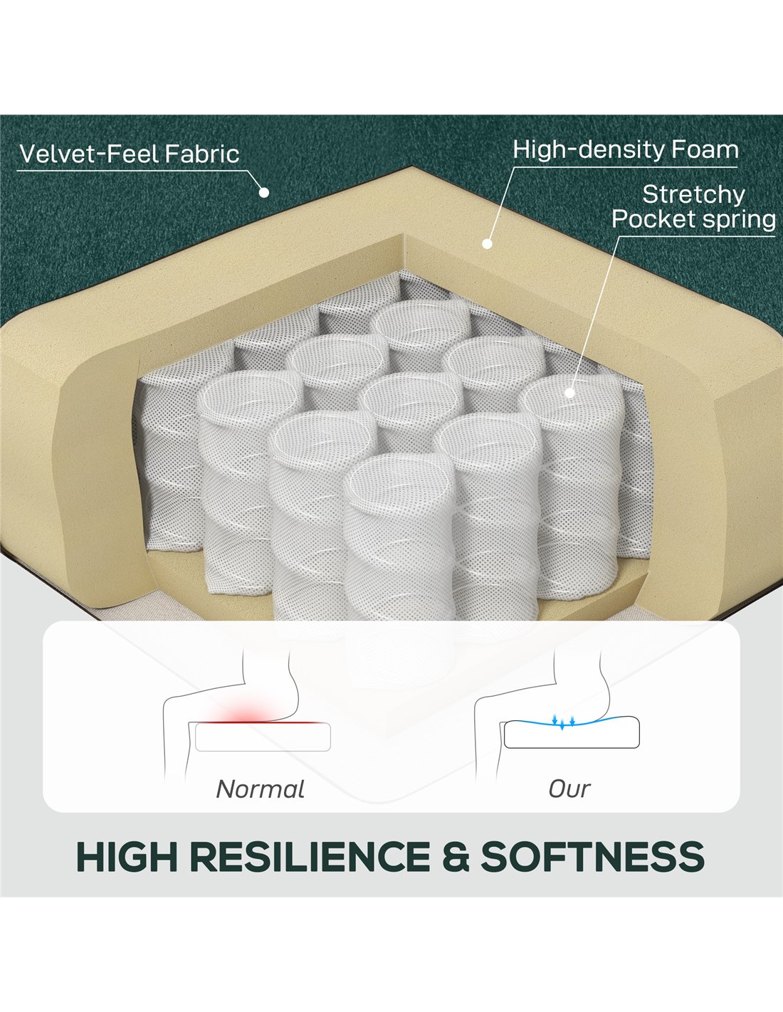 - Complements a variety of interior styles, from traditional to eclectic, thanks to its timeless button-tufted detailing and rich green colour.