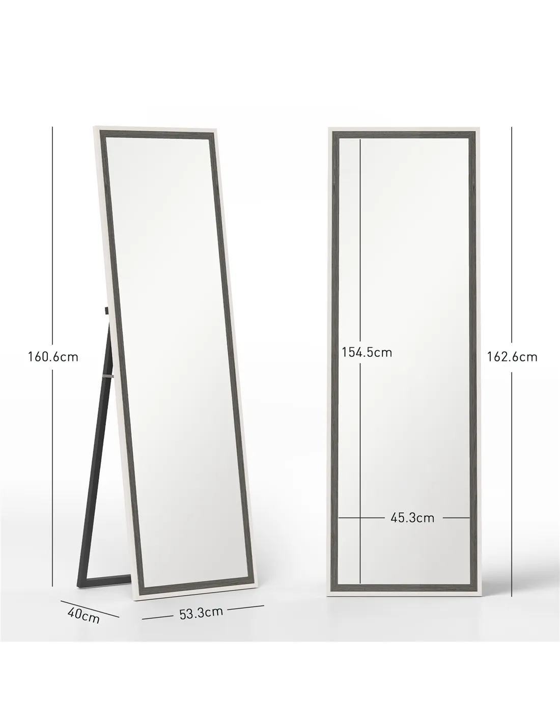 HOMCOM 162.6 cm Two-Tone Full Length Mirror - White/Grey-Tone