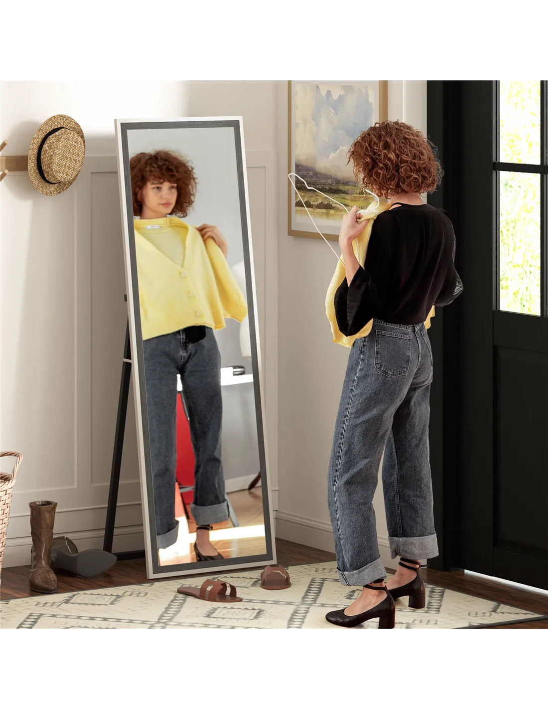 - Perfect for bedrooms or dressing rooms, this full-length mirror allows you to check your outfit from head to toe with ease.