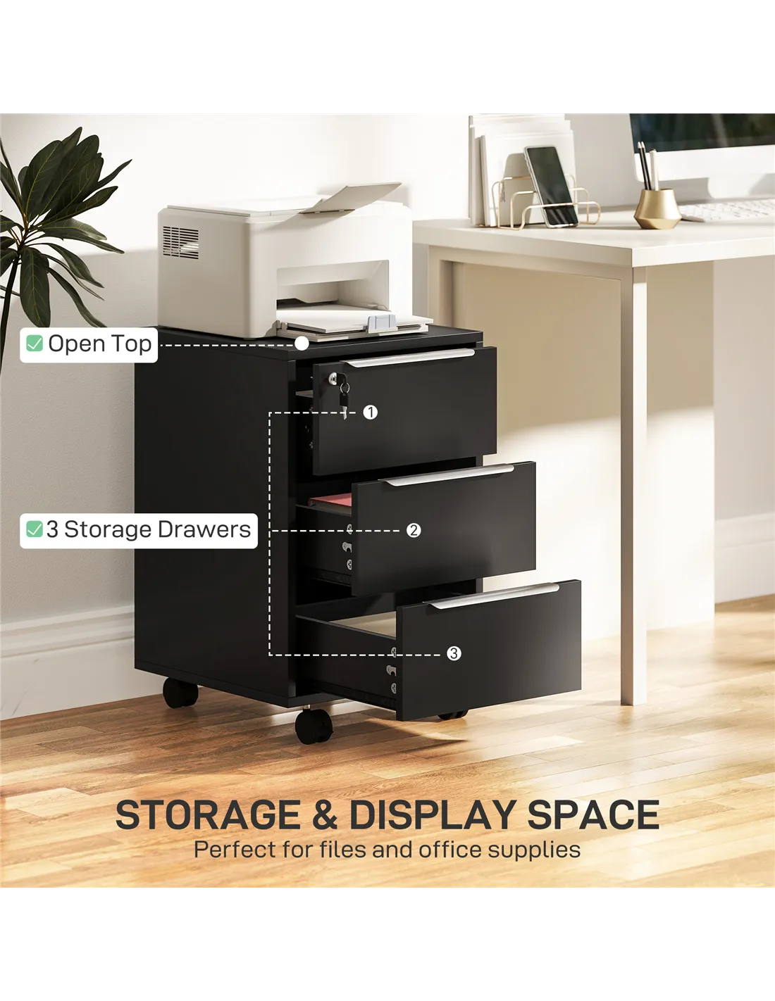 HOMCOM Three-Drawer Locking Filing Cabinet - Black
