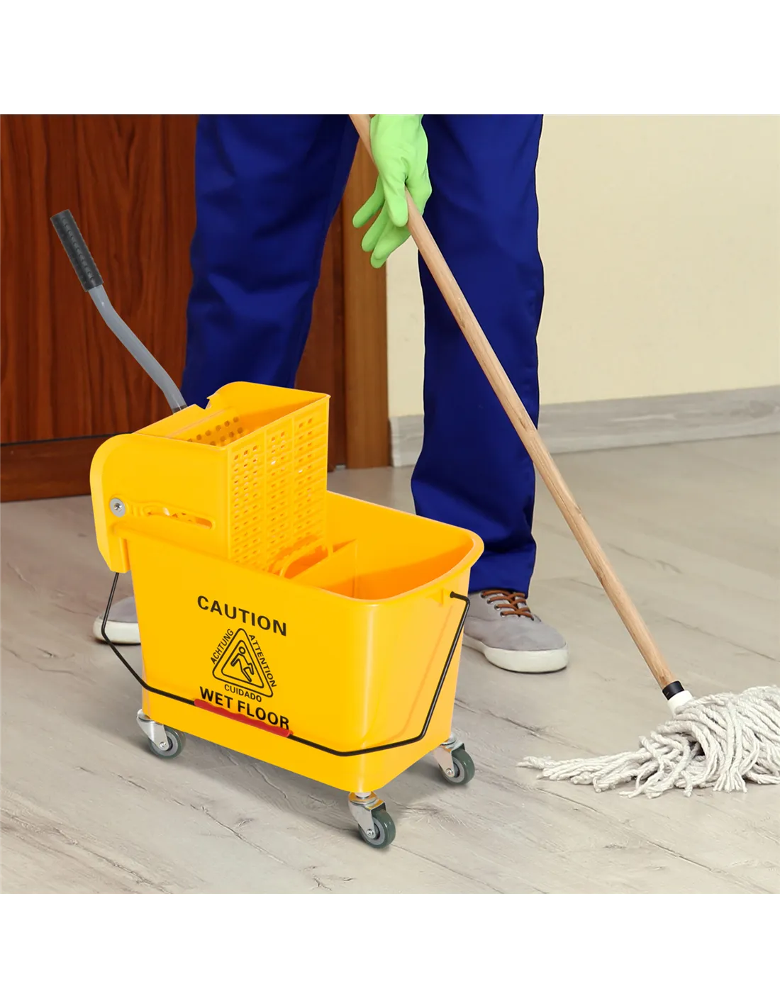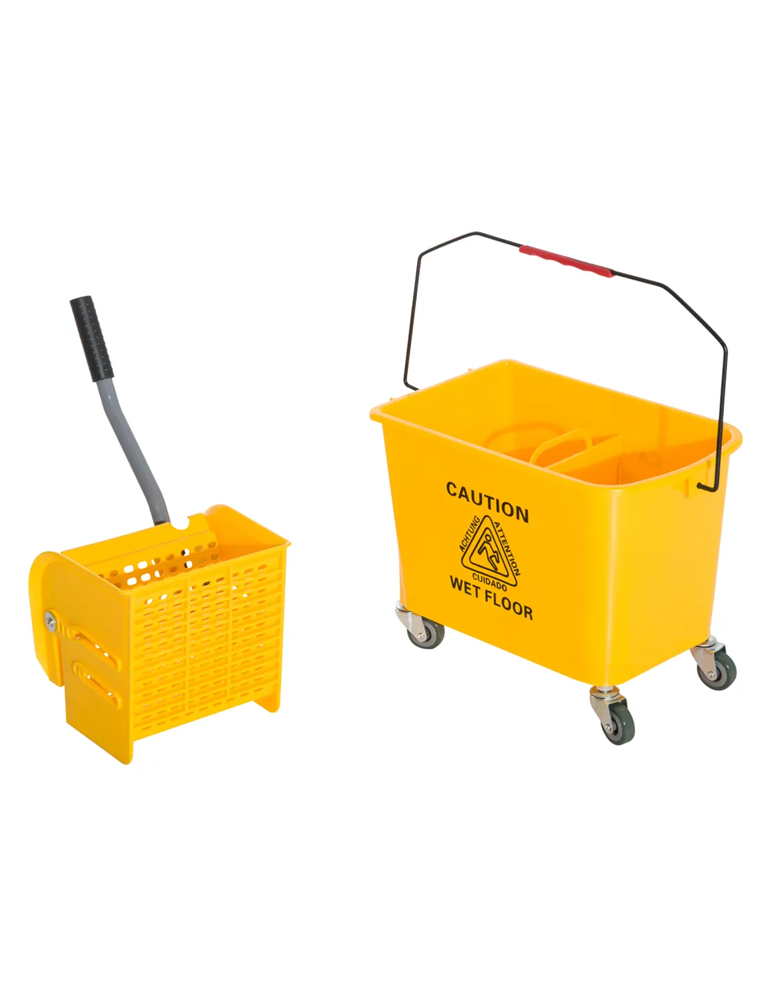 HOMCOM 20L Mop Bucket on Wheels, with Water Separation Panel - Yellow