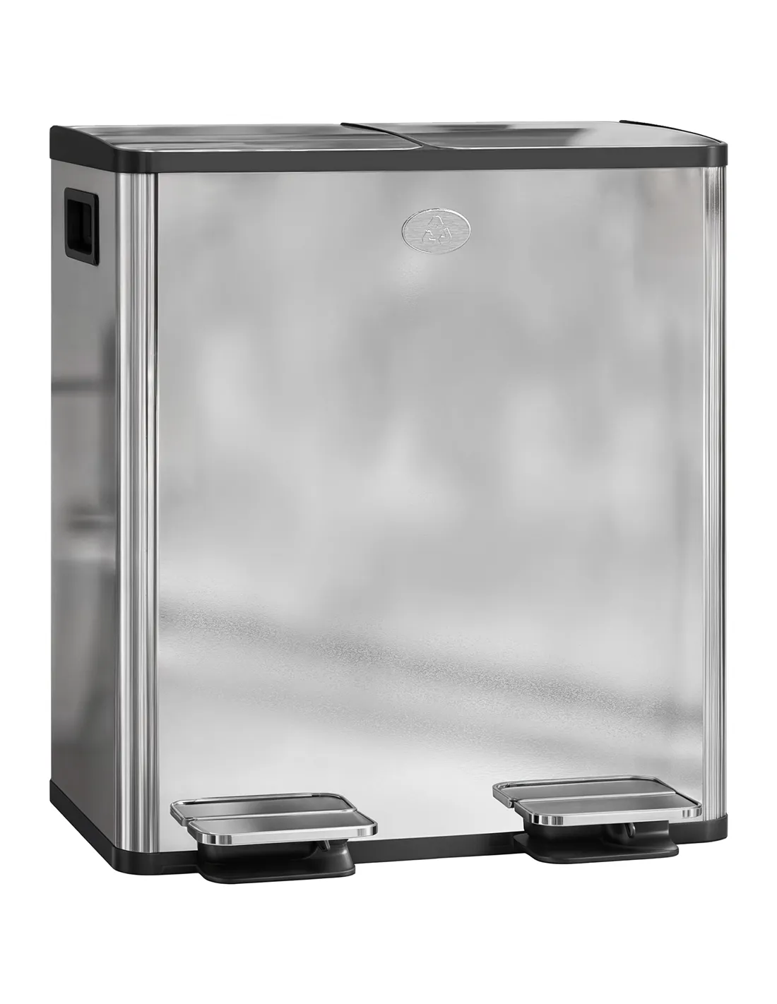 - Stainless steel structure makes double bin robust. Sleek polished finish. Resists fingerprint marks for hygiene