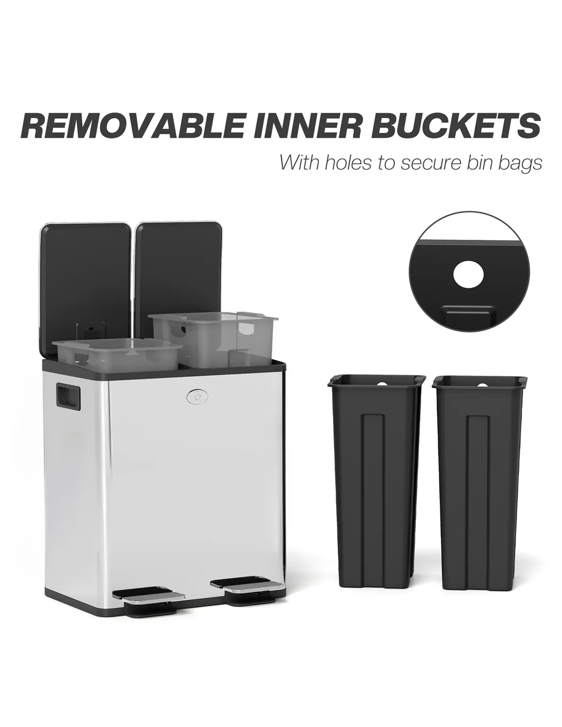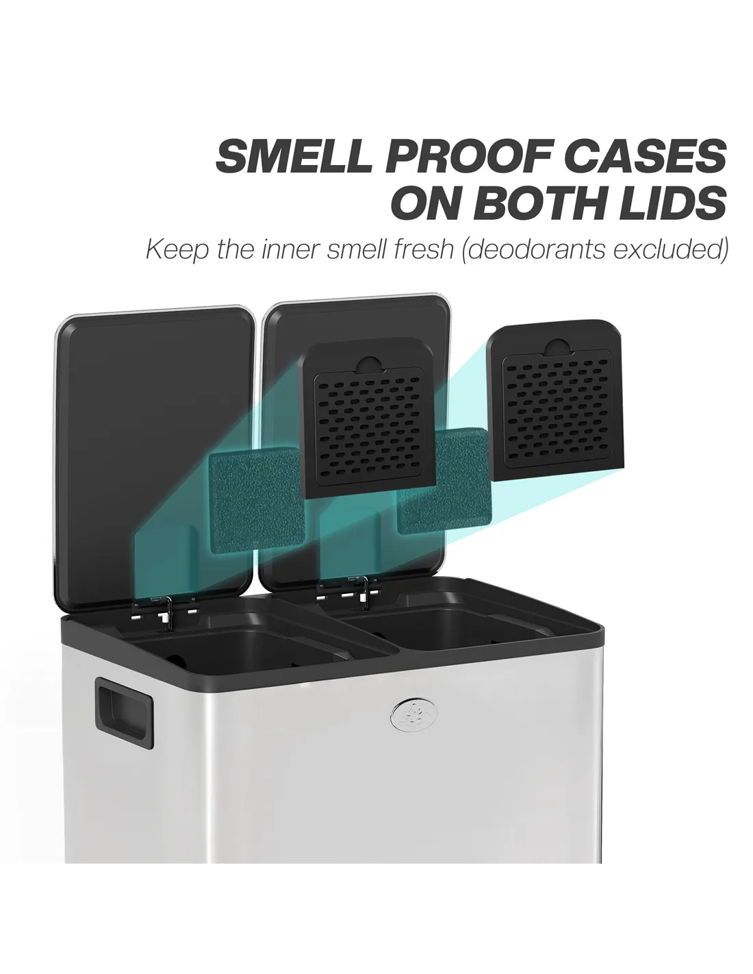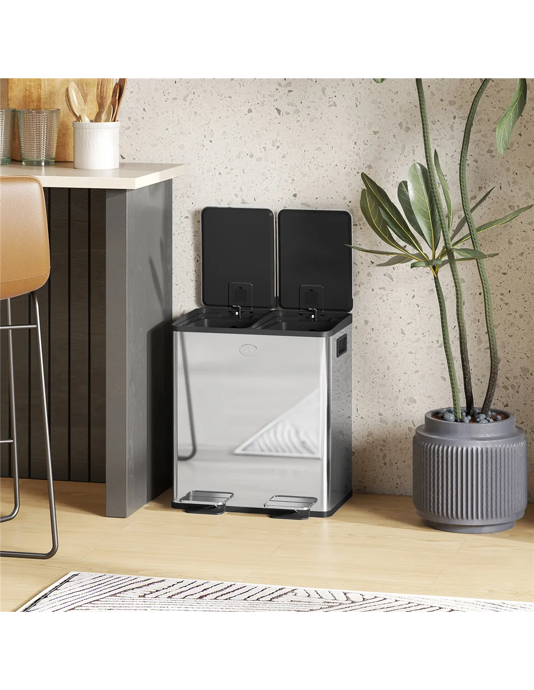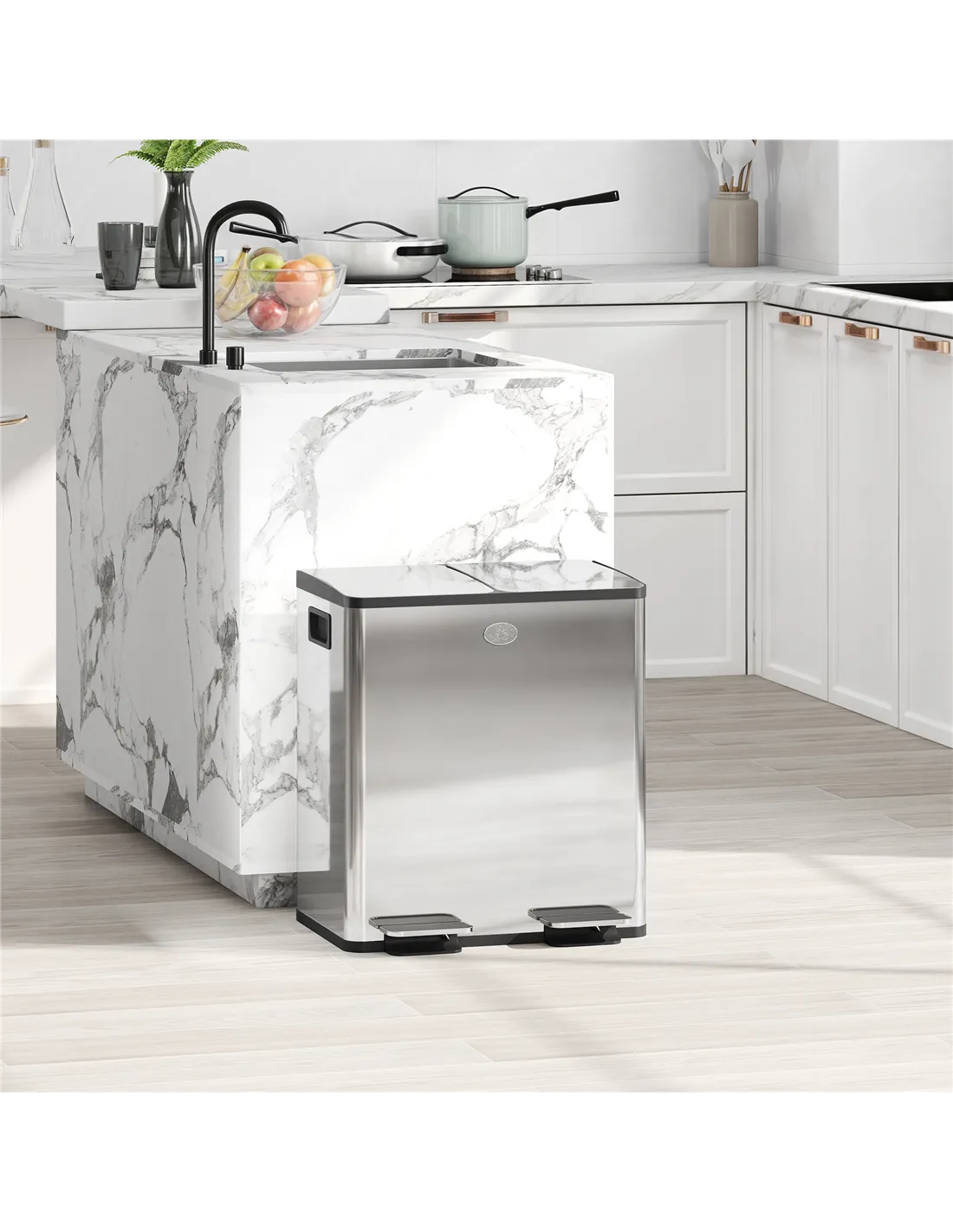 HOMCOM 40L Dual Compartment Stainless Steel Bin, with Deodoriser Holders - Silver Tone