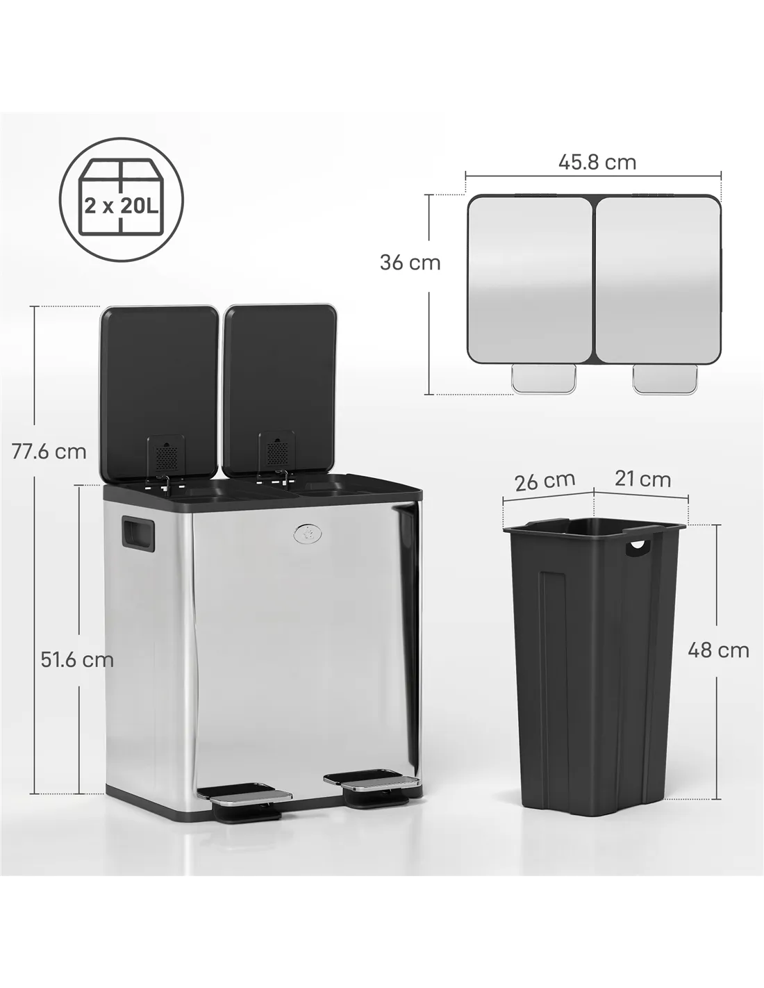 - 2 x 20L capacity: dual bin holds plenty and can separate items however you need