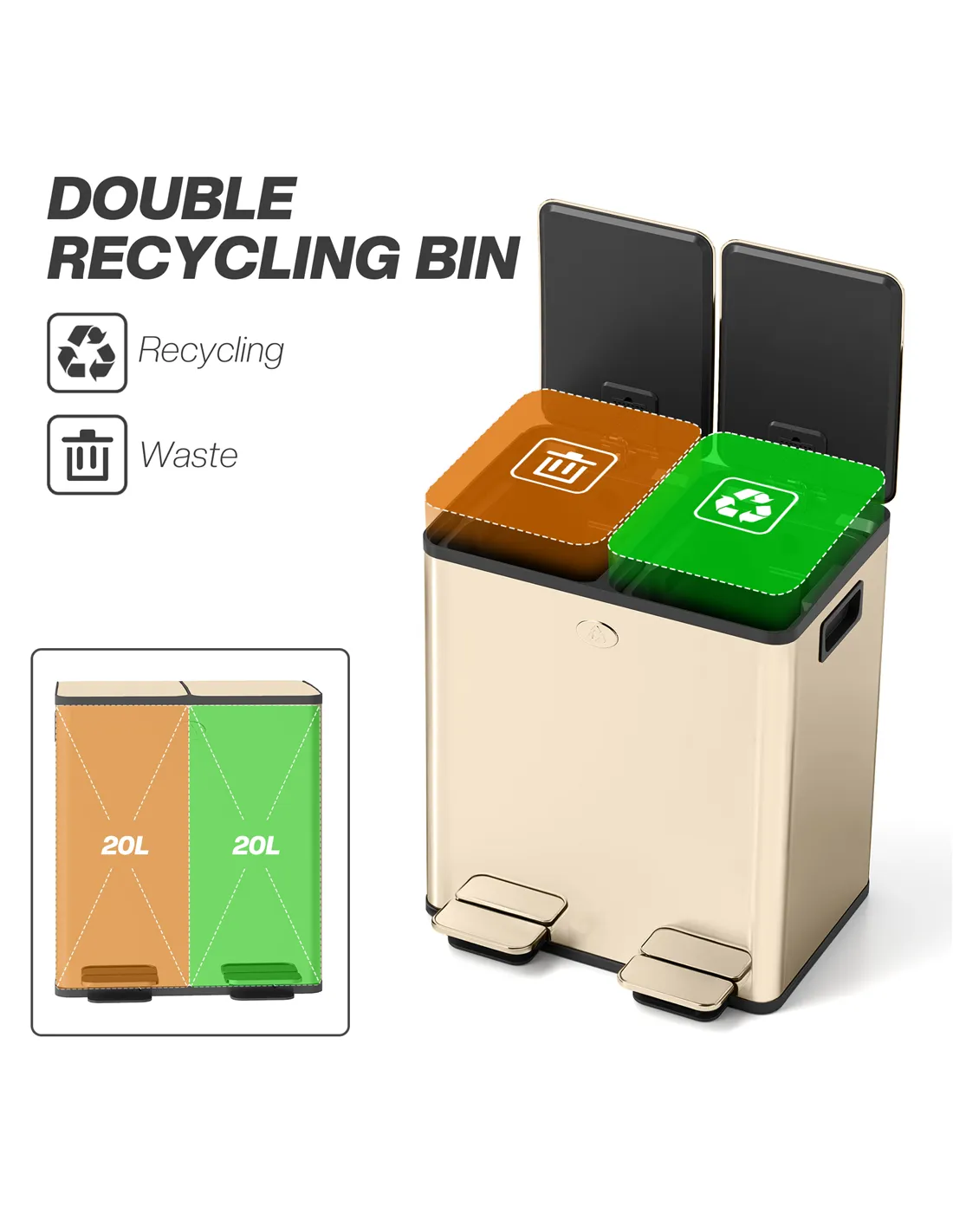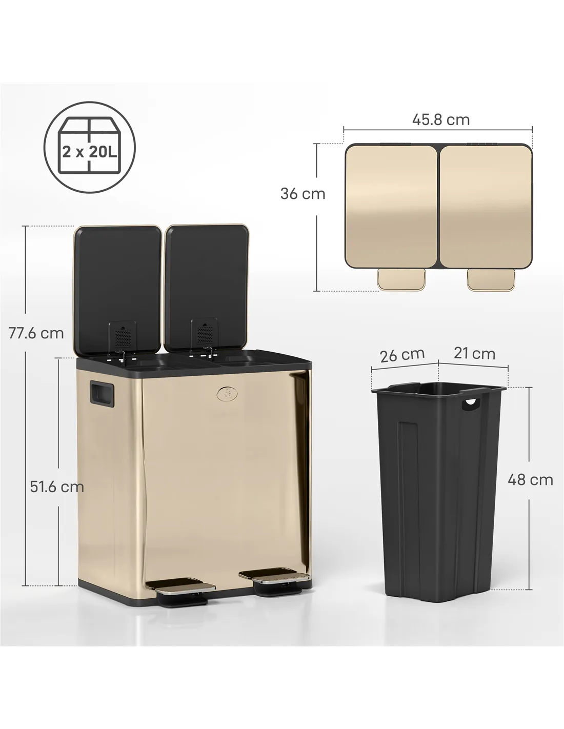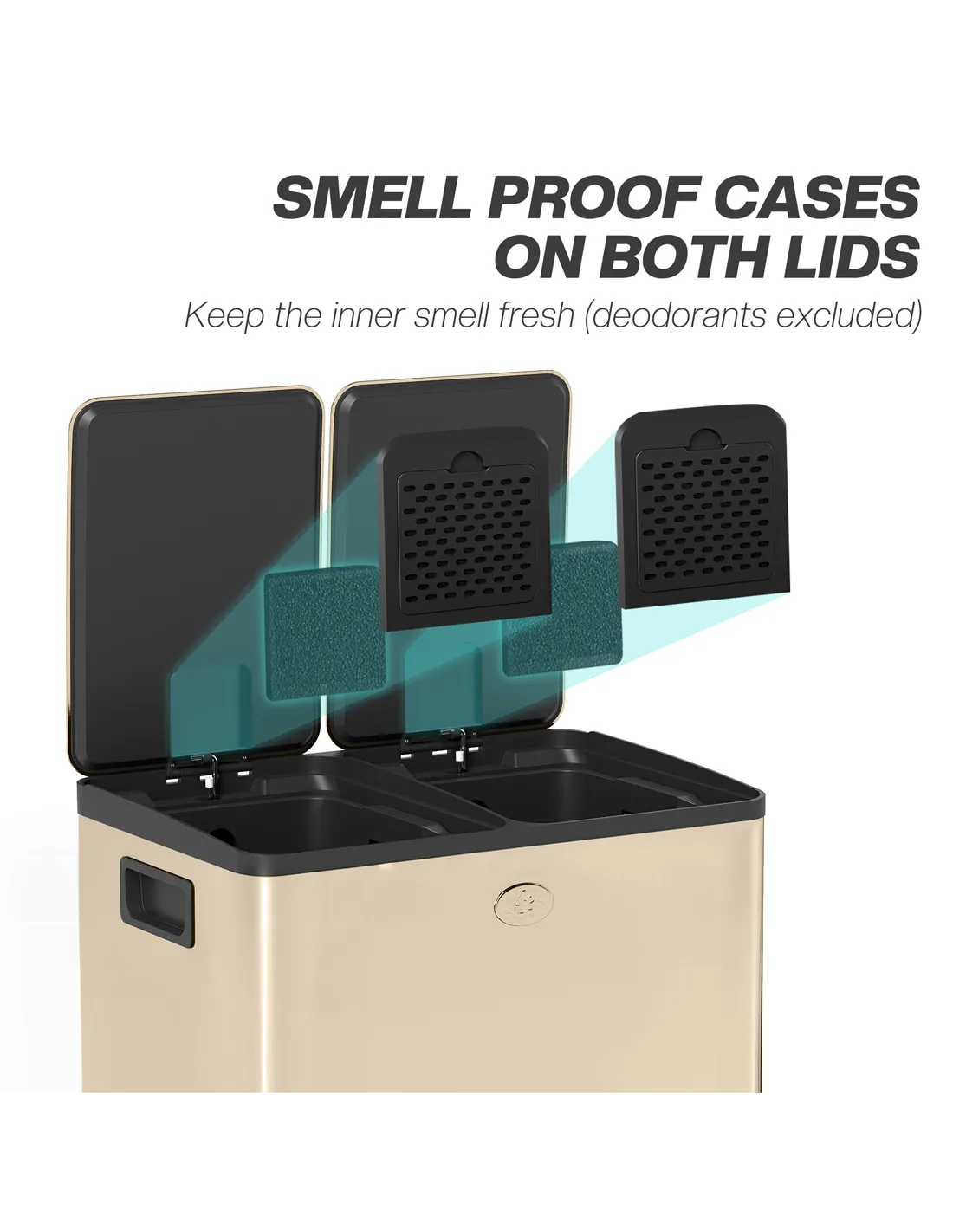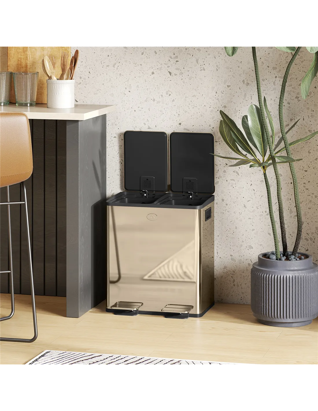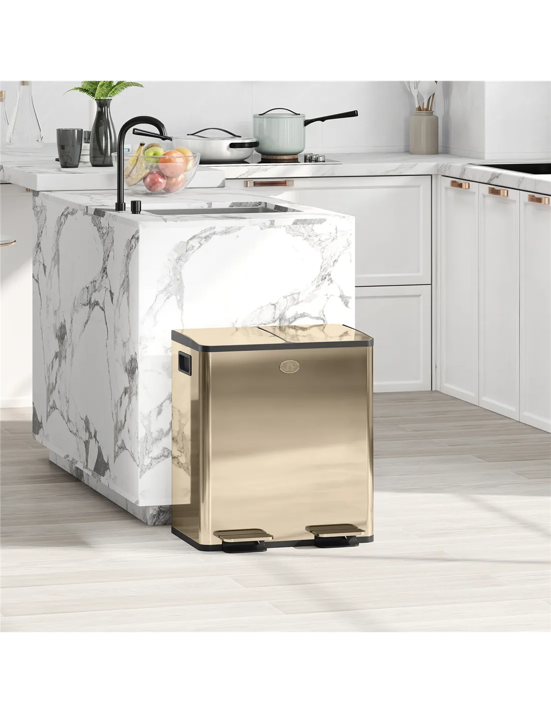 HOMCOM 40L Dual Compartment Stainless Steel Bin, with Deodoriser Holders - Gold Tone