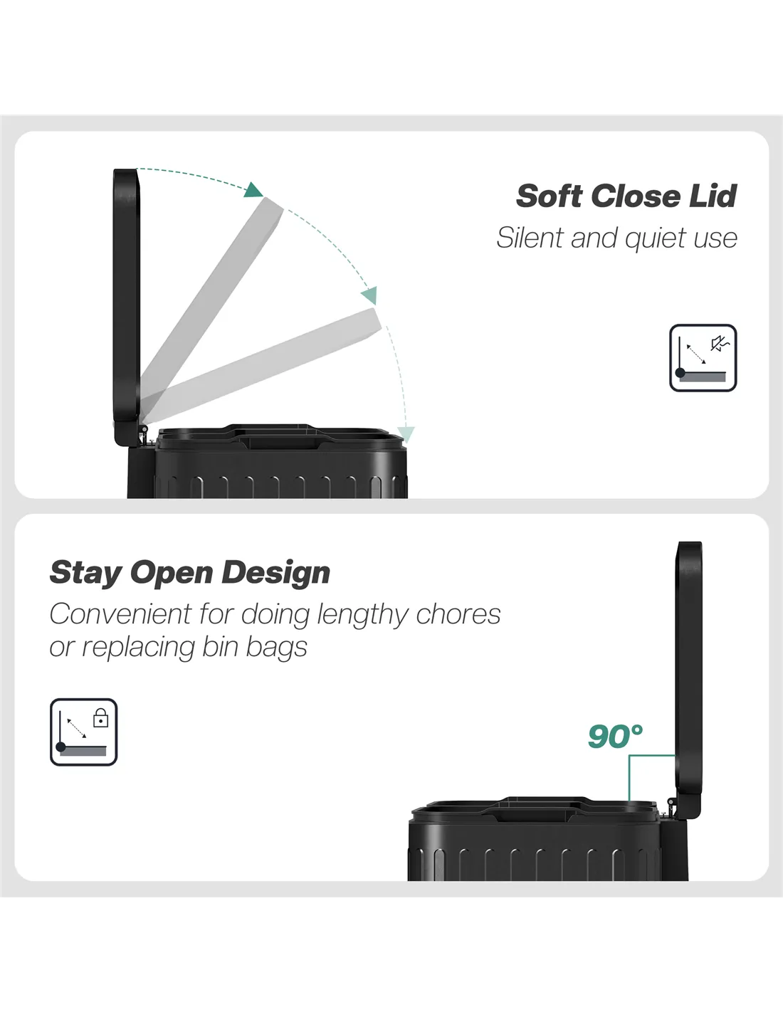 - 2 x 20L capacity: trash bin holds plenty and can separate items however you need