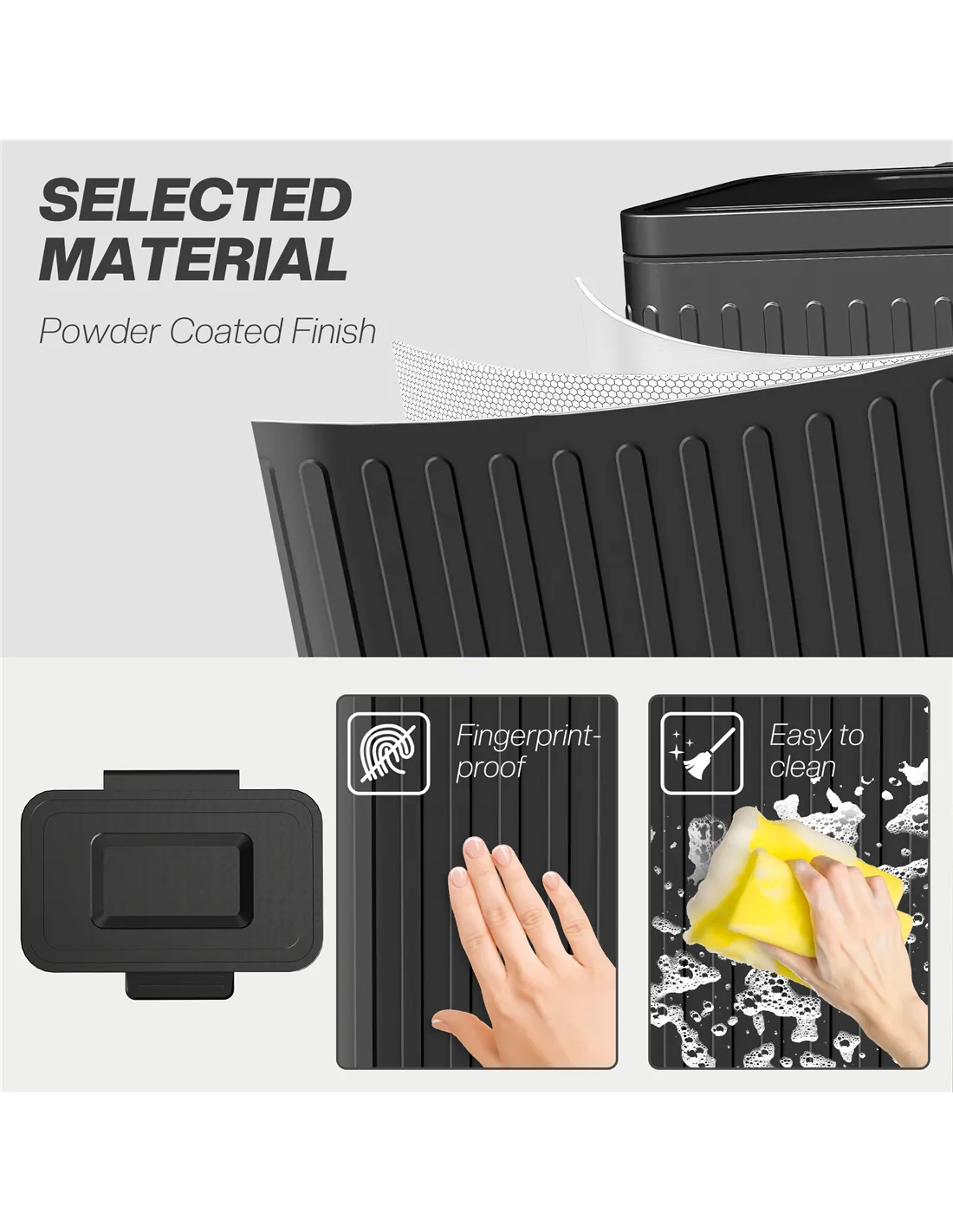 - Powder coated metal structure makes double bin tough. Resists fingerprint marks for hygiene