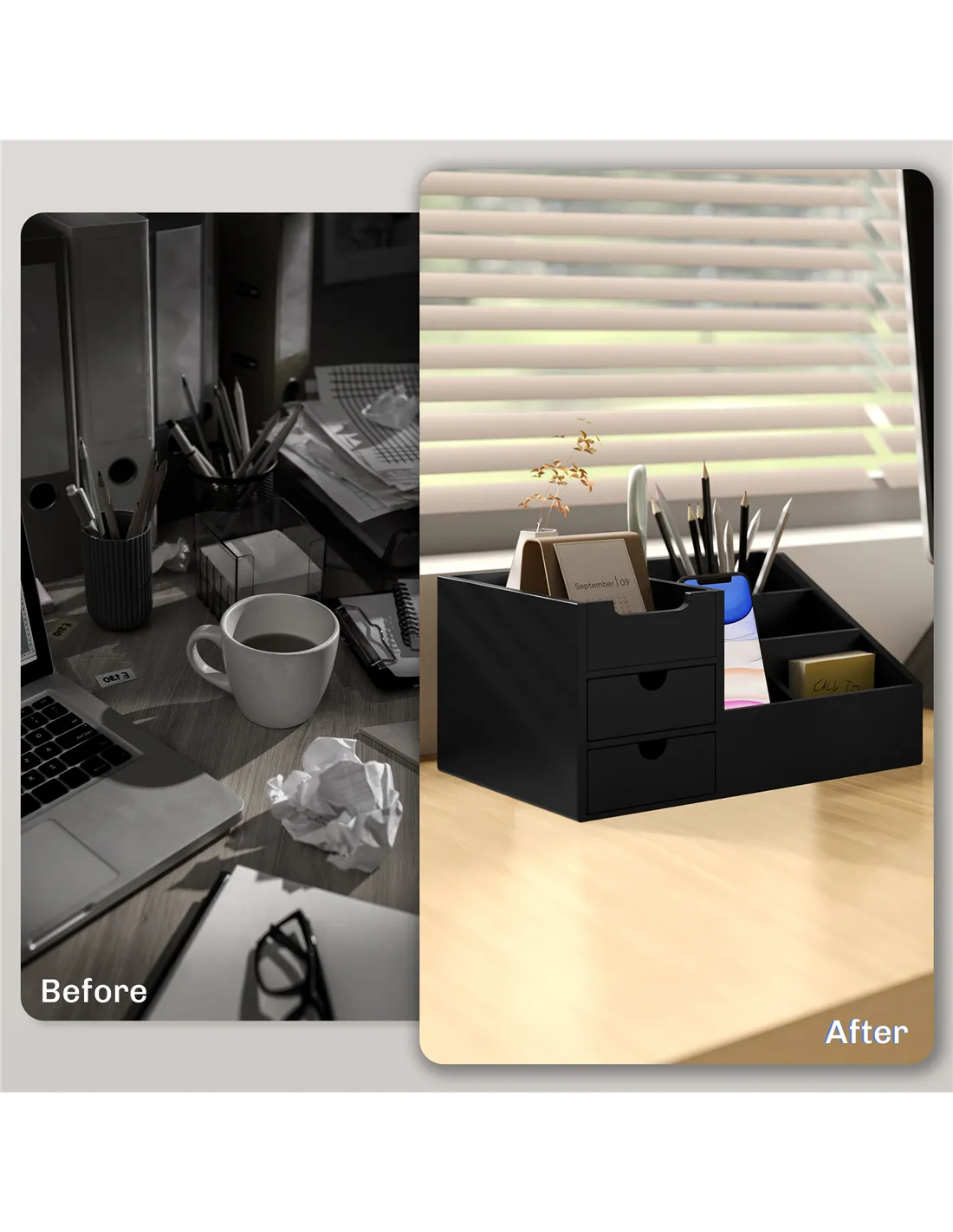 - Practical and elegant way to keep your working surface clean and tidy