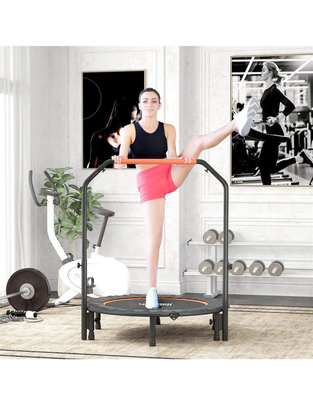 HOMCOM 45" Foldable Mini Fitness Trampoline, with Adjustable Foam Handle, Orange