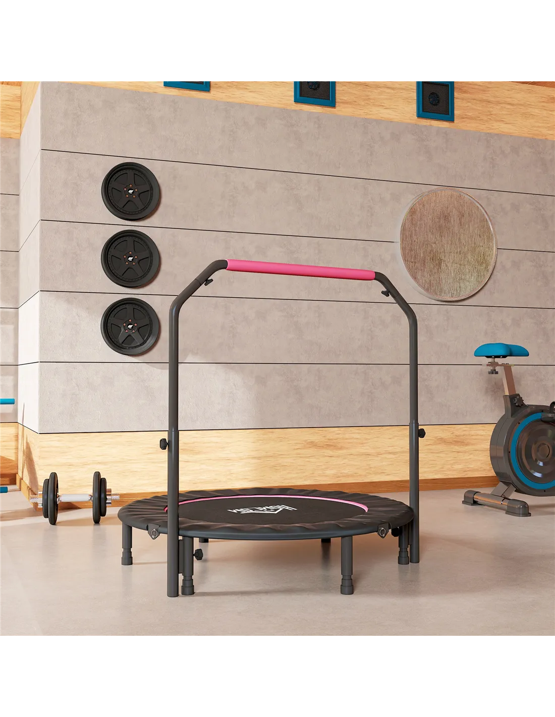 HOMCOM 48" Foldable Mini Fitness Trampoline, with Adjustable Foam Handle, Pink