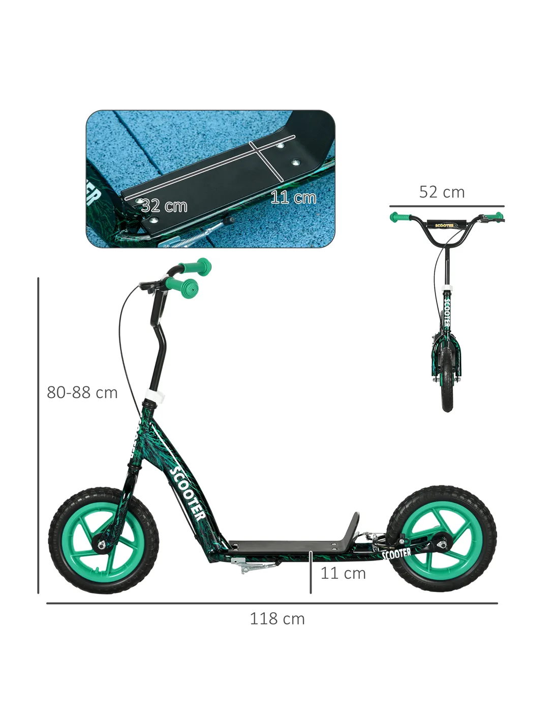AIYAPLAY Kids Scooter with Adjustable Handlebar, Children's Kick Scooter with Non-slip Footplate, Rear Brake, Kickstand, Green