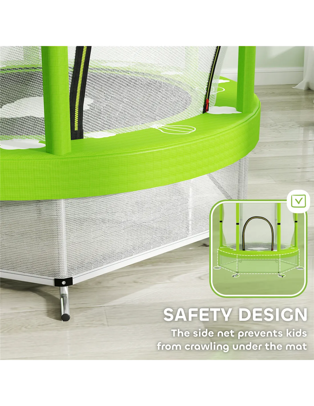 - Net at the bottom stops children from crawling underneath