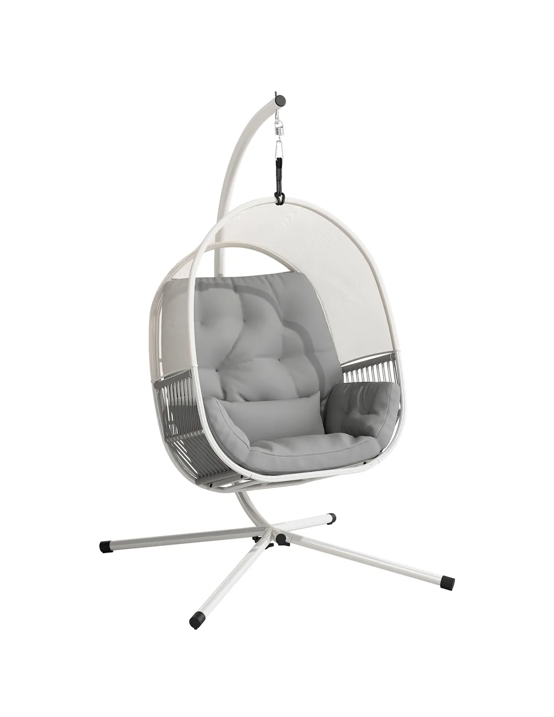 Outsunny Hanging Egg Chair Outdoor Indoor, Swing Hammock Chair with Stand, Cushions, Lumbar Pillow, Adjustable Height and Steel Frame for Garden Patio Lounge Porch, Light Grey