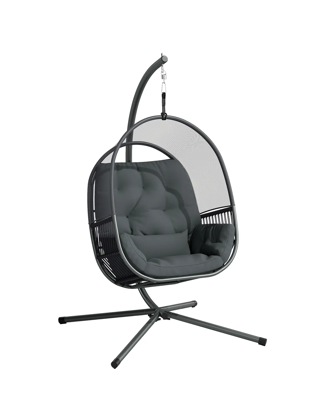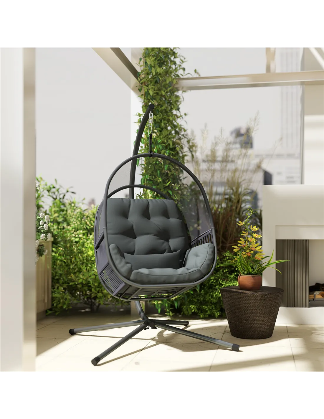 Outsunny Hanging Egg Chair Outdoor Indoor, Swing Hammock Chair with Stand, Cushions, Lumbar Pillow, Adjustable Height and Steel Frame for Garden Patio Lounge Porch, Dark Grey