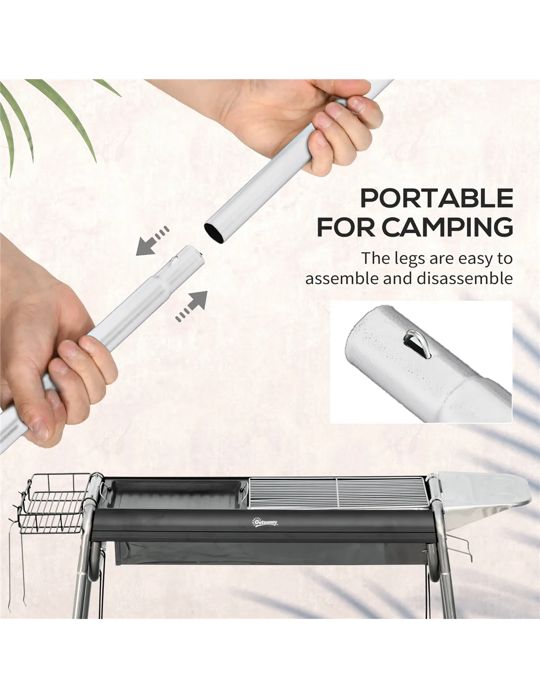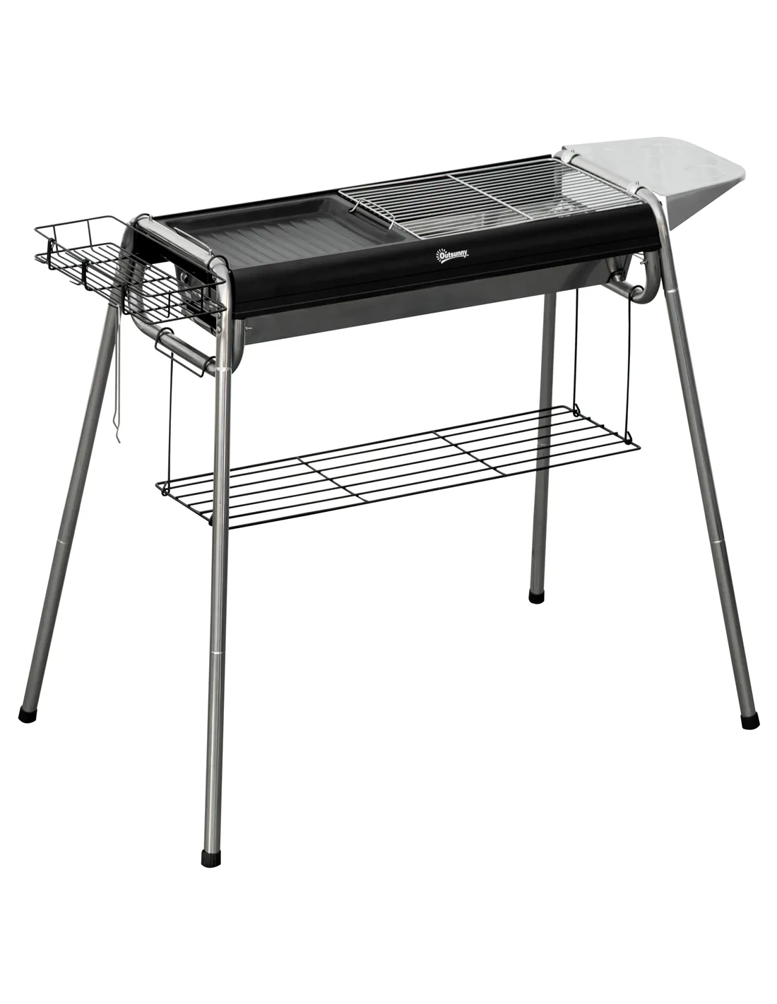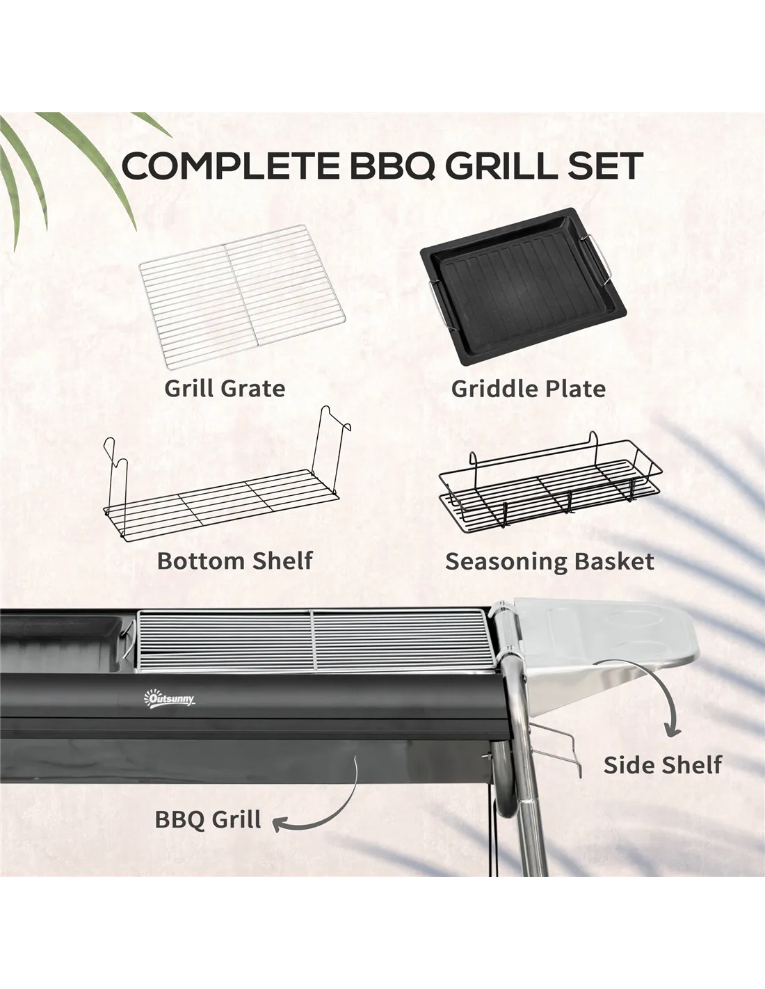 The Outsunny charcoal BBQ grill is perfect for a variety of outdoor occasions across the UK. Whether hosting a garden party, enjoying a camping trip, or tailgating at your favourite sporting event, this versatile grill delivers excellent results. Its spacious cooking surface comfortably serves 8-15 people, making it ideal for family gatherings or social barbecues. The included grill grate and griddle plate allow you to prepare a range of dishes, from succulent steaks to delicate vegetables. With side shelves and a seasoning basket, all your utensils and spices stay within easy reach, enhancing your cooking experience. Thanks to its sturdy construction and anti-slip feet, it remains stable on uneven ground, whether in your backyard or on a hiking adventure. Assembly is straightforward, requiring only the attachment of the legs, so you can quickly set up and start cooking.