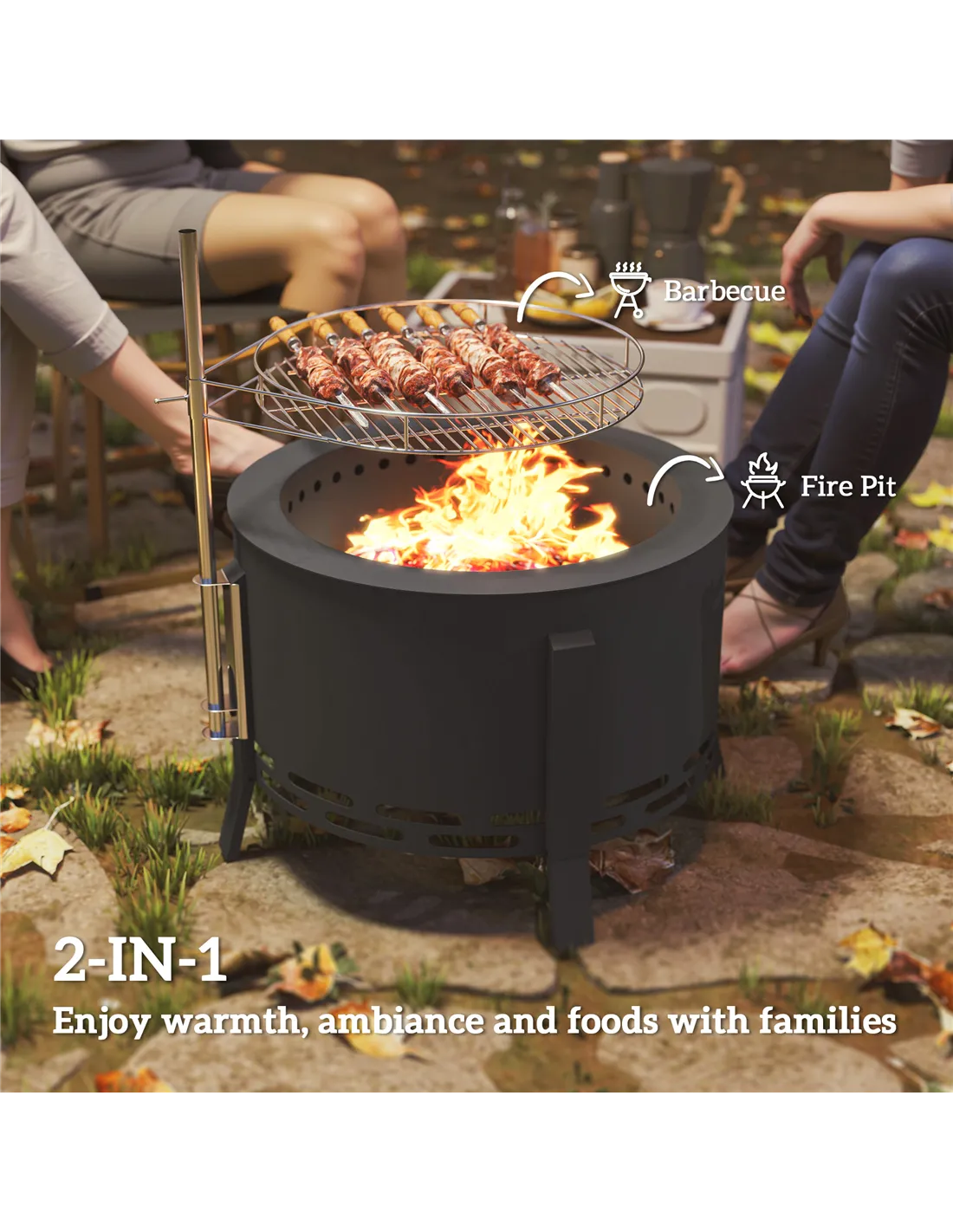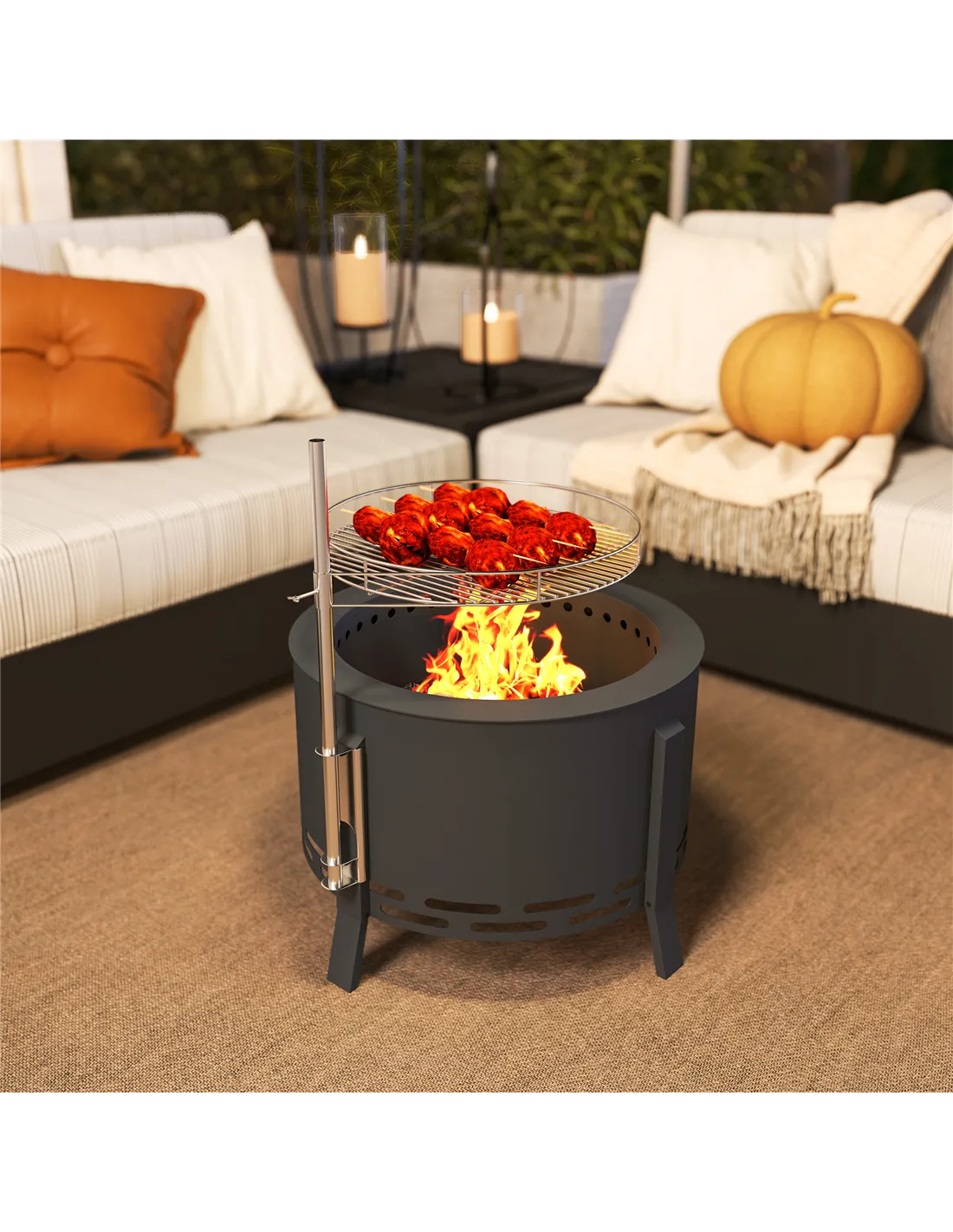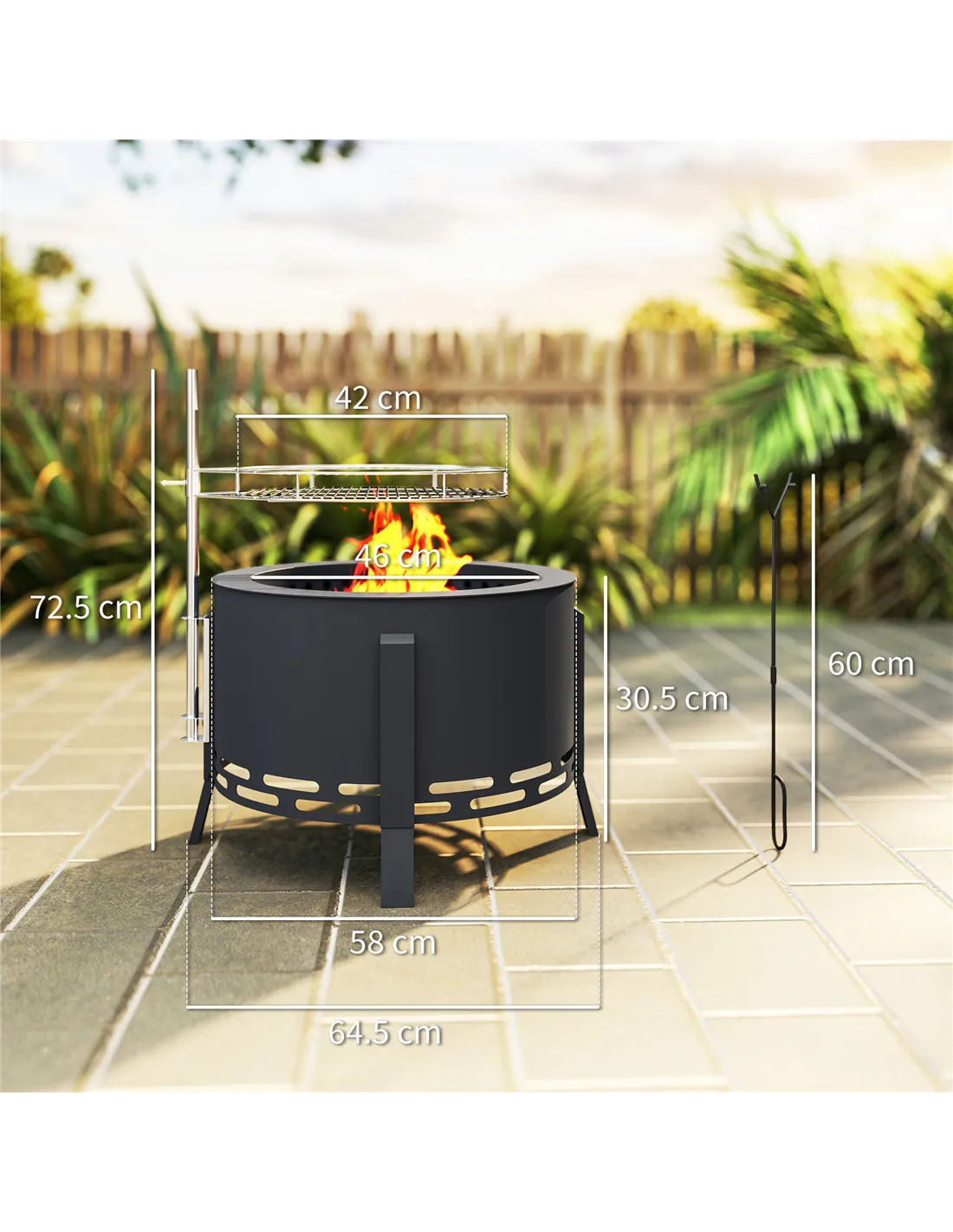 Outsunny Portable Fire Pit, 58 cm Round Firepit with Grill Grate, Fire Bowl with Ash Catcher and Poker, Fire Pit BBQ for Garden Camping Bonfire Picnic, Black
